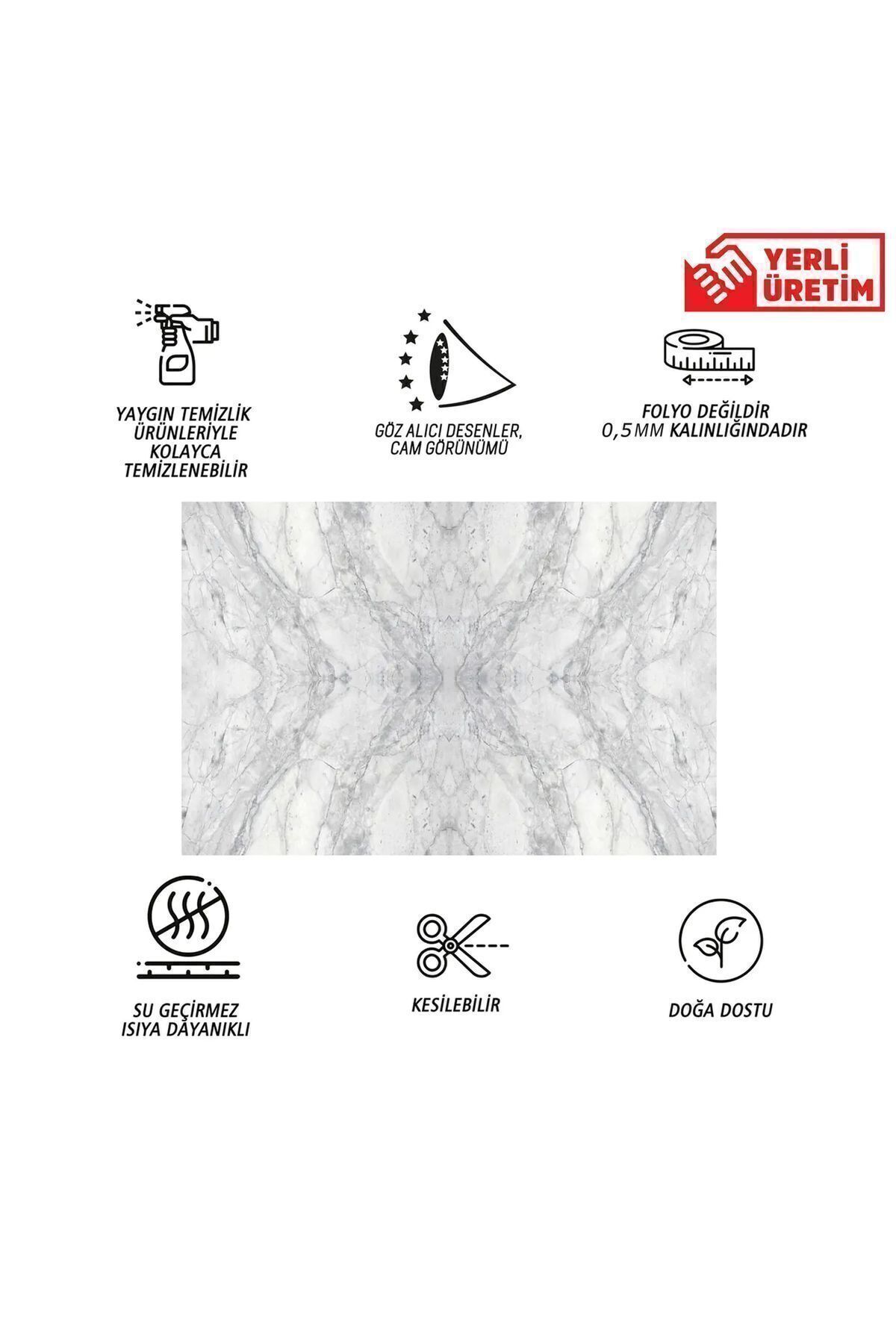 Ülkemizde ve dünyanın farklı yerlerinde çıkan doğal taş ve mermerlerin desenlerinin 0.5 mm kalınlıkta özel pvc malzemeye UV baskı yapıldıktan sonra güçlü bir çift taraflı bant ile lamine edilmesiyle TÜRKİYE de üretilmiştir.