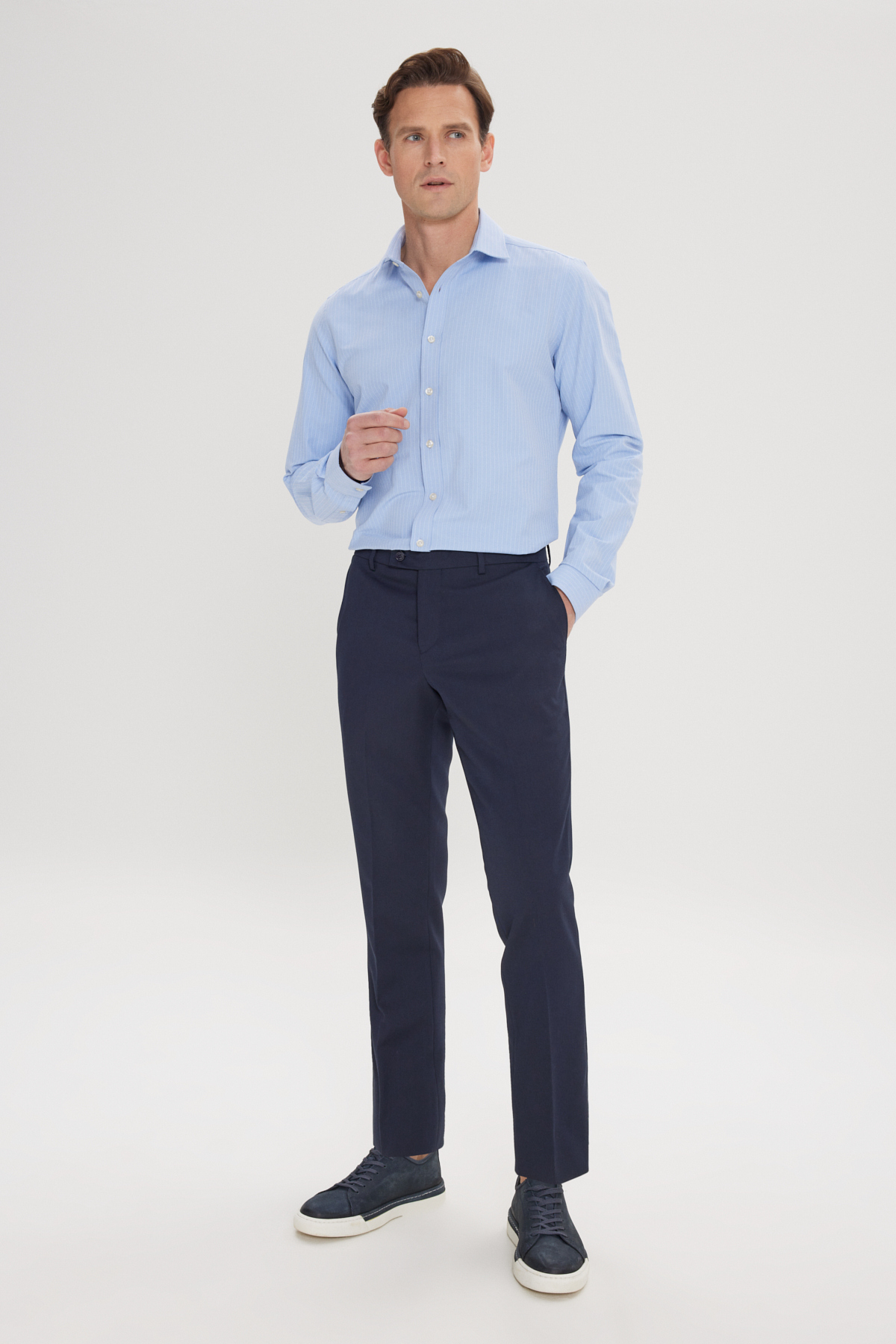 %73 Polyester, %25 Viskoz, %2 Elastan, Desensiz Lacivert, Yan Cep, Regular Fit, Klasik, Normal Bel, Normal Paça, Ürün Bedeni: 32, Manken Ölçüleri: Boy: 1