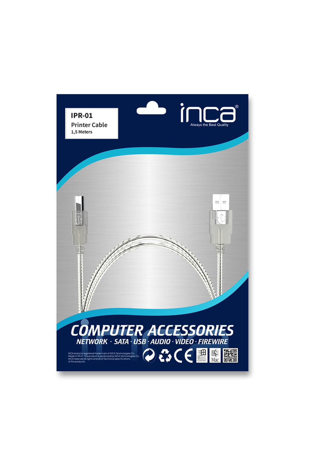 INCA IPR-01 USB 2.0 1.5M YAZICI KABLOSU ÜRÜN ÖZELLİKLERİ 1.5 metre kablo uzunluğu