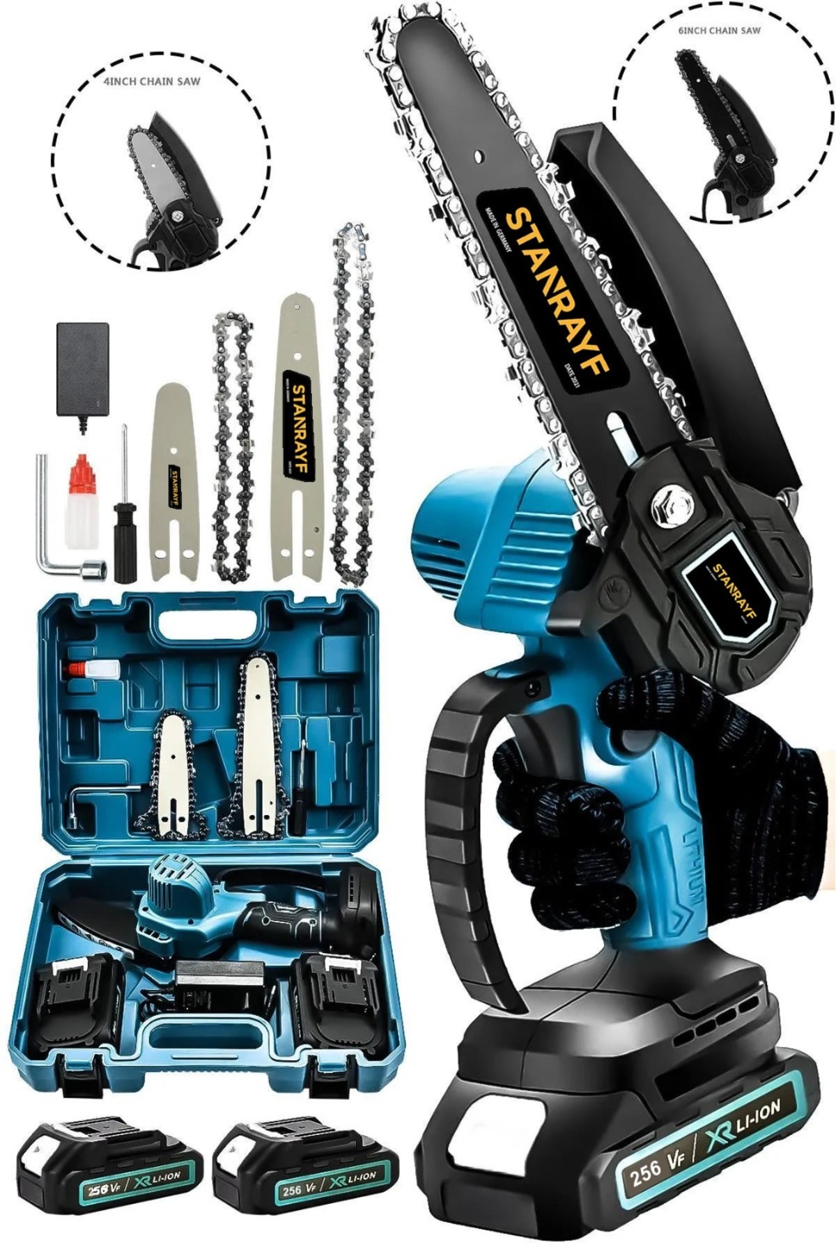 STANRAYF Alman 128 V 12 Ah Tam Prof Çelik Dişli Dal Budama Bıçkı Odun Ağaç Testeresi Çift Akülü Taşıma Çantalı 10 cm