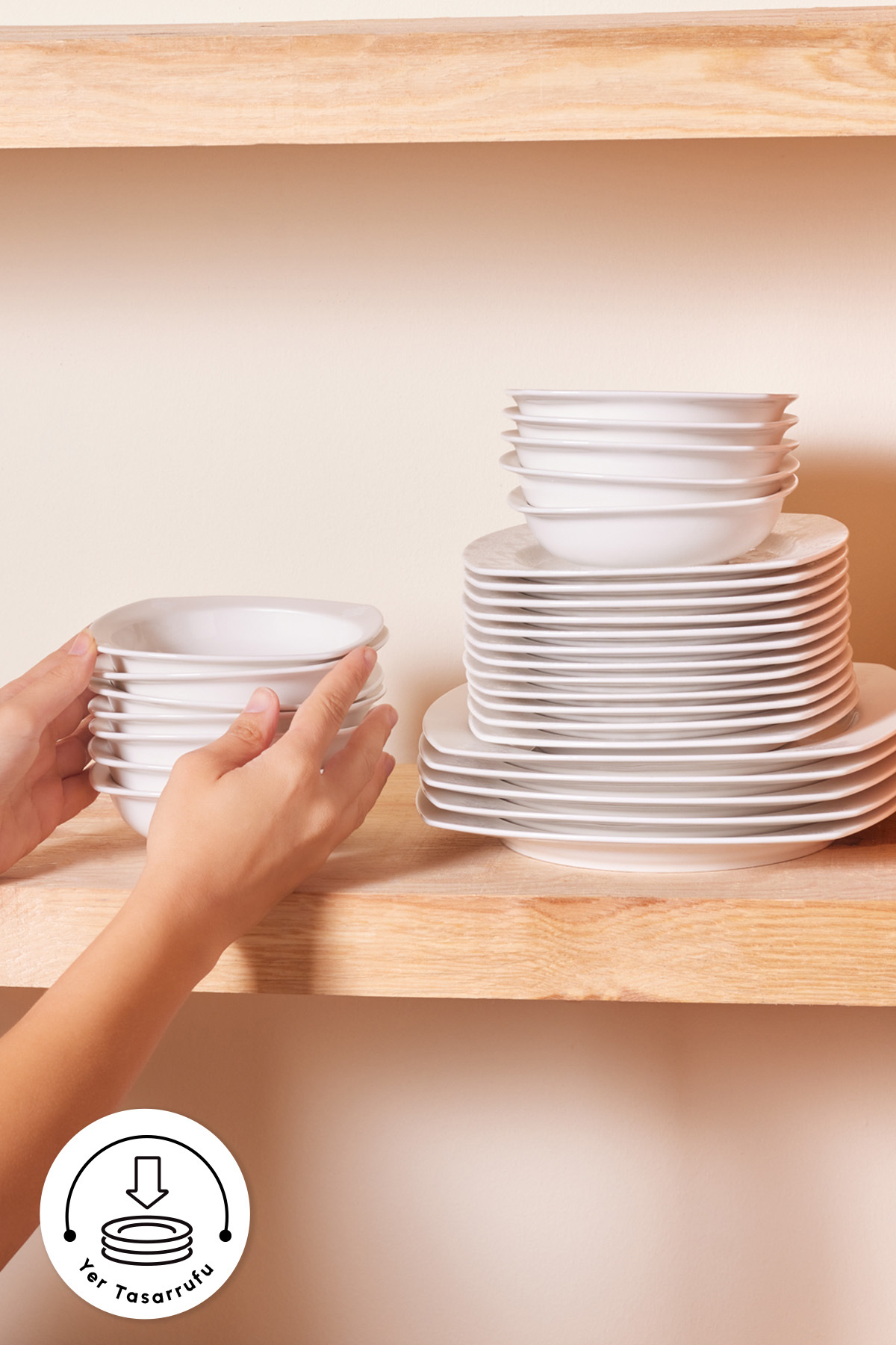 Kare formunu tamamlayan renkli-renksiz veya desenli-desensiz setleriyle farklı sofra sunumlarına uyum sağlar.