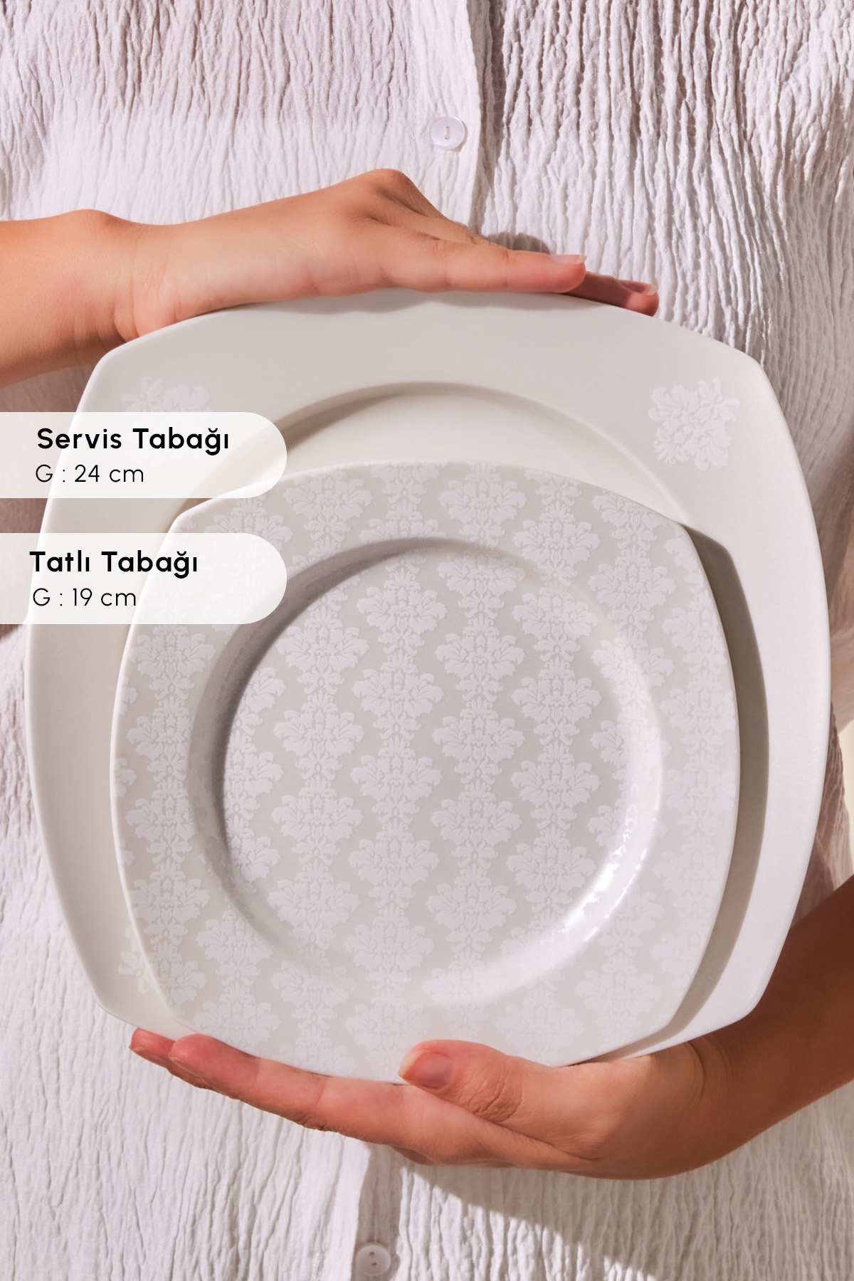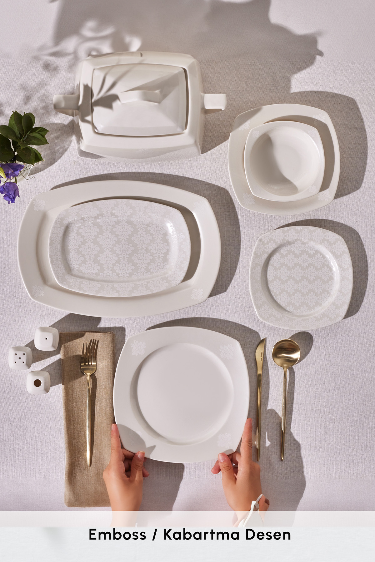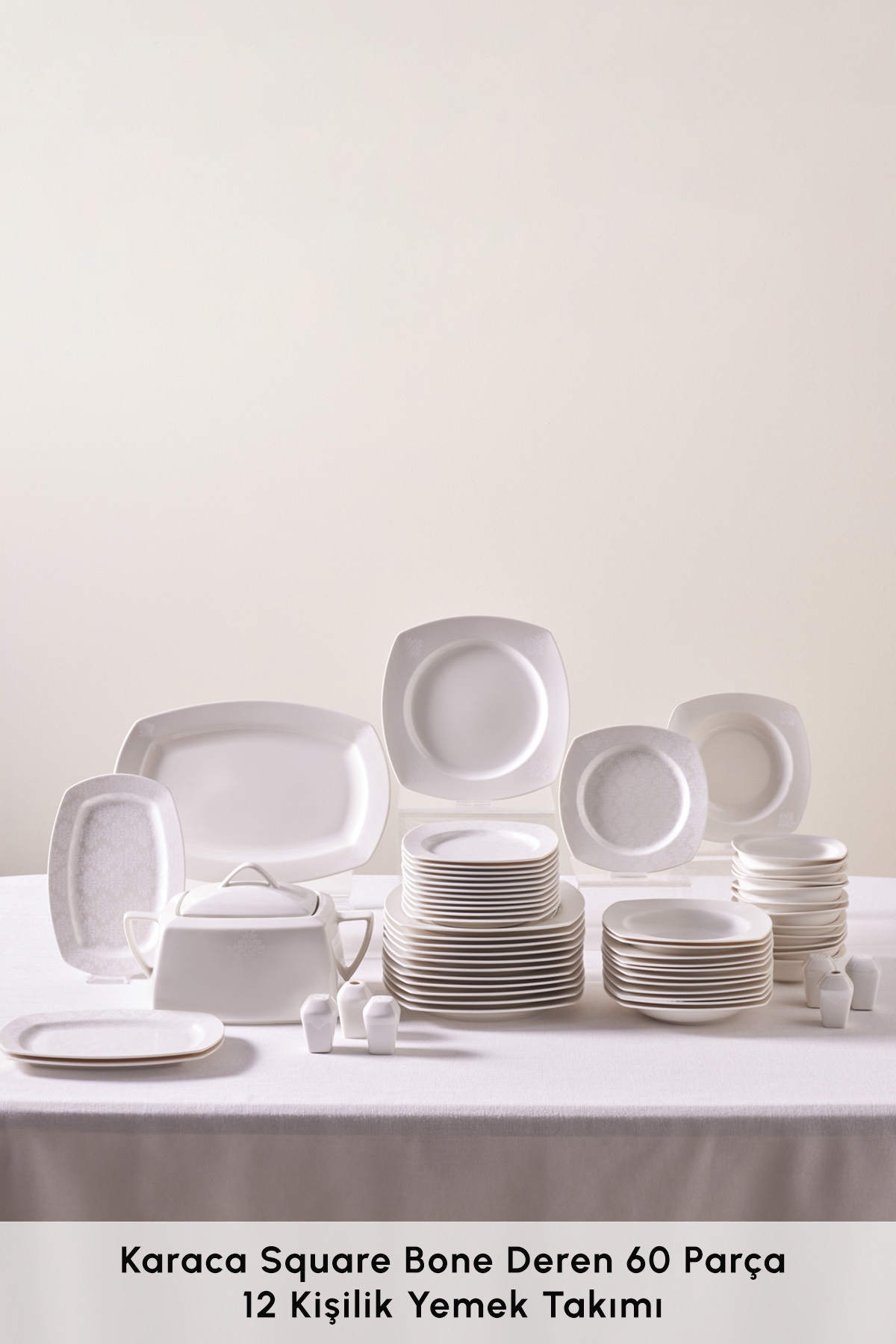 Karaca Deren Cream 60 Parça 12 Kişilik Yarım Kare Porselen Yemek Takımı Set İçerik 12 Adet Servis Tabak (24 cm)