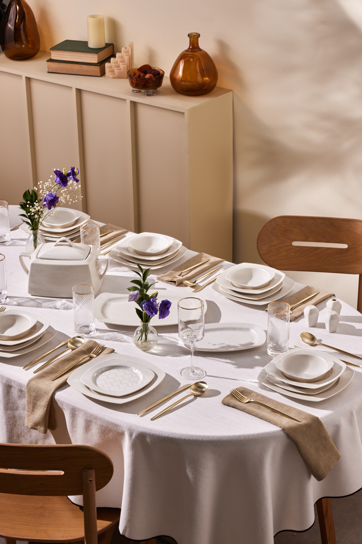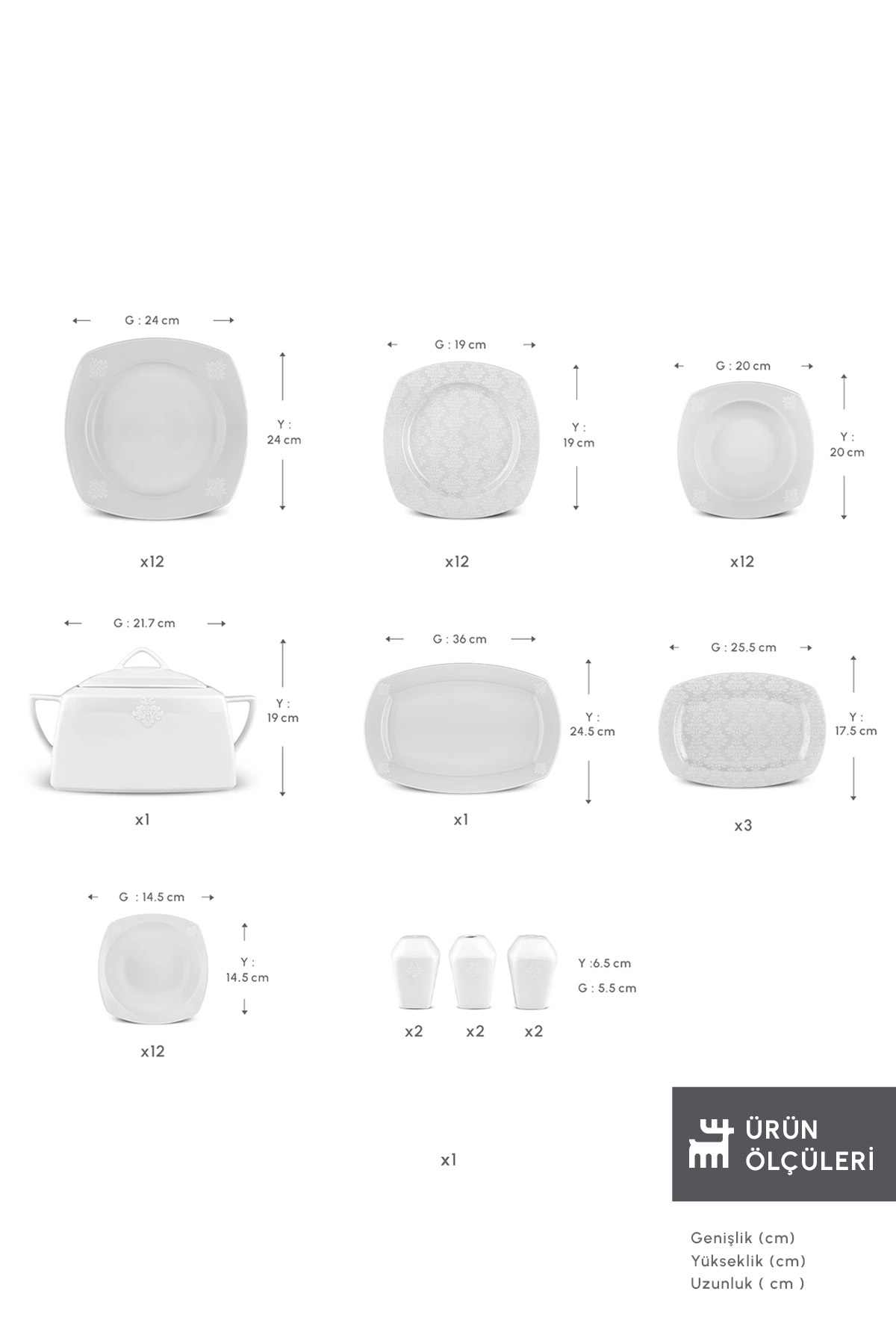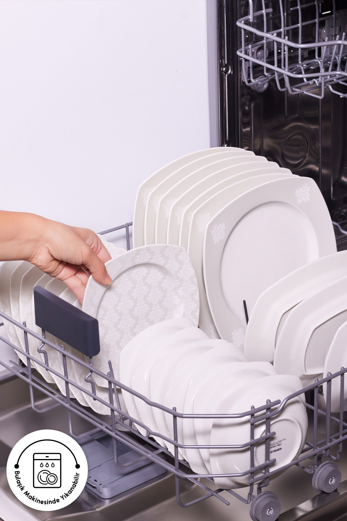 Karaca Deren Cream 60 Parça 12 Kişilik Yarım Kare Porselen Yemek Takımı Set İçerik 12 Adet Servis Tabak (24 cm)