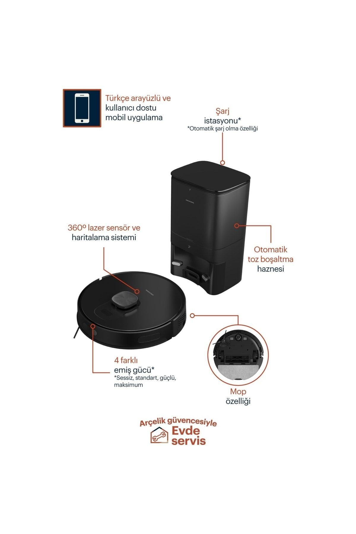 Grundig VCR 7230 otomatik toz boşaltma sistemli robot süpürge toz haznesinin doluluğunu izleyerek süpürge performansını optimize eder.