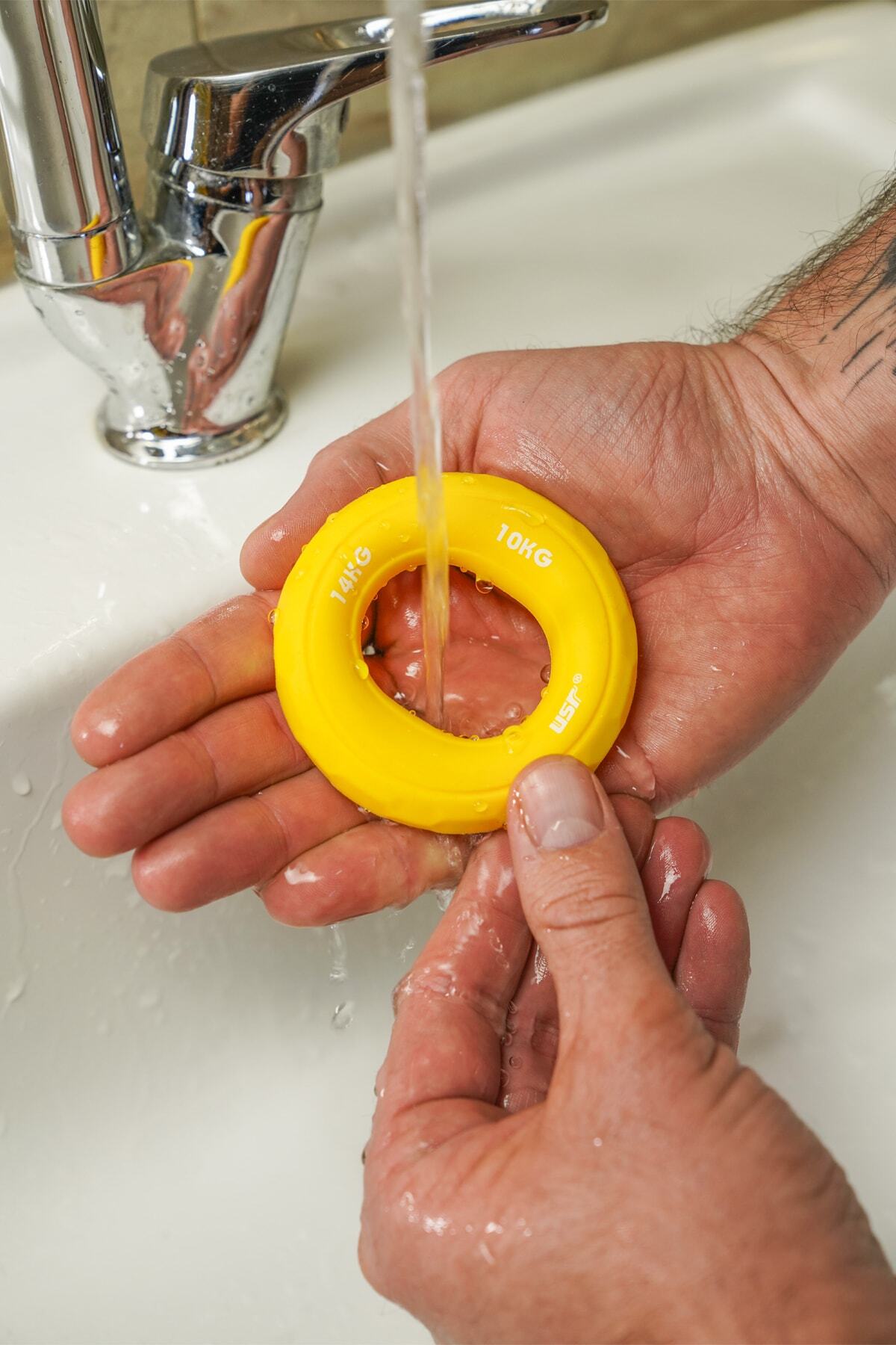 Özellikler Silikon materyal 10 ve 14 kg 2 farklı sertlik Şık, özgün dizayn Sarı renk Faydaları Parmak eklem kapsülleri sakatlanmaları, el bileği yaralanmaları ve ince motor hareketlerin geliştirilmesi amacıyla kullanıldığı gibi müzik aleti çalan kişilerin de parmak kaslarını güçlendirmek için çokça tercih ettiği bir üründür.