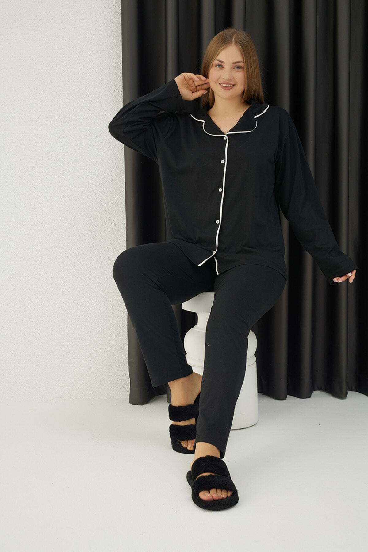 - Düz deseniyle sade ve zamansız bir tarz yaratırken, büyük beden koleksiyonumuzda yer alan bu pijama takımı her gardıropta yerini almayı hak ediyor