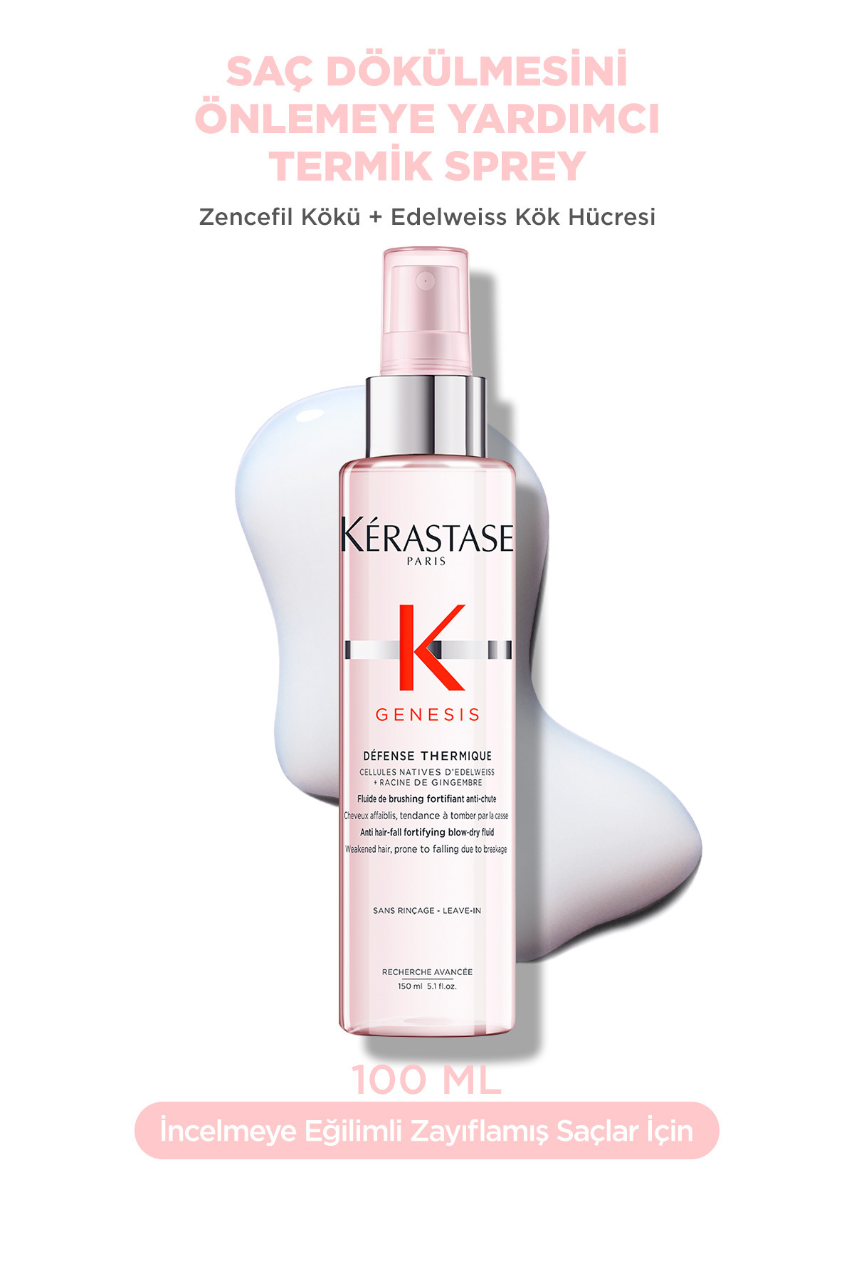 Genesis Défense Thermique Dökülme Karşıtı Güçlendirici Isıdan Koruyucu Saç Spreyi, Edelweiss özü ve Zencefil kökü içeren zengin içeriği, saçlara parlaklık ve ipeksi bir his vermesini sağlar.