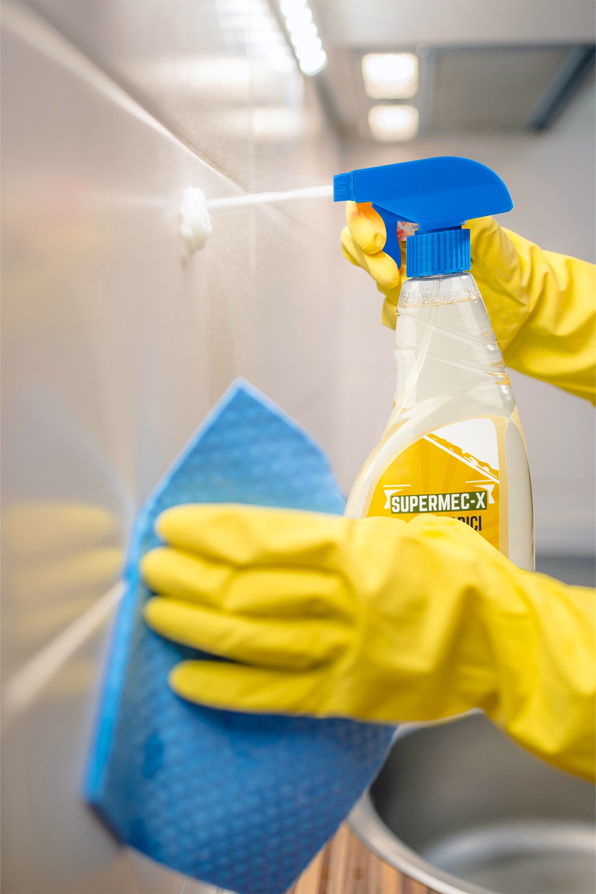 Ürün Bilgisi: SUPERMEC-X Leke Çıkarıcı, mobilya, halı, otomotiv, tekstil, ev temizliği ve benzeri birçok alanda kullanılabilen, uygulandığı birçok yüzeyin ve malzemenin yapısını bozmadan lekeleri çözebilen güçlü bir genel temizleyicidir. Hızlı ve etkili bir şekilde, iz bırakmadan uygulanan yüzeyi kirden arındırır.