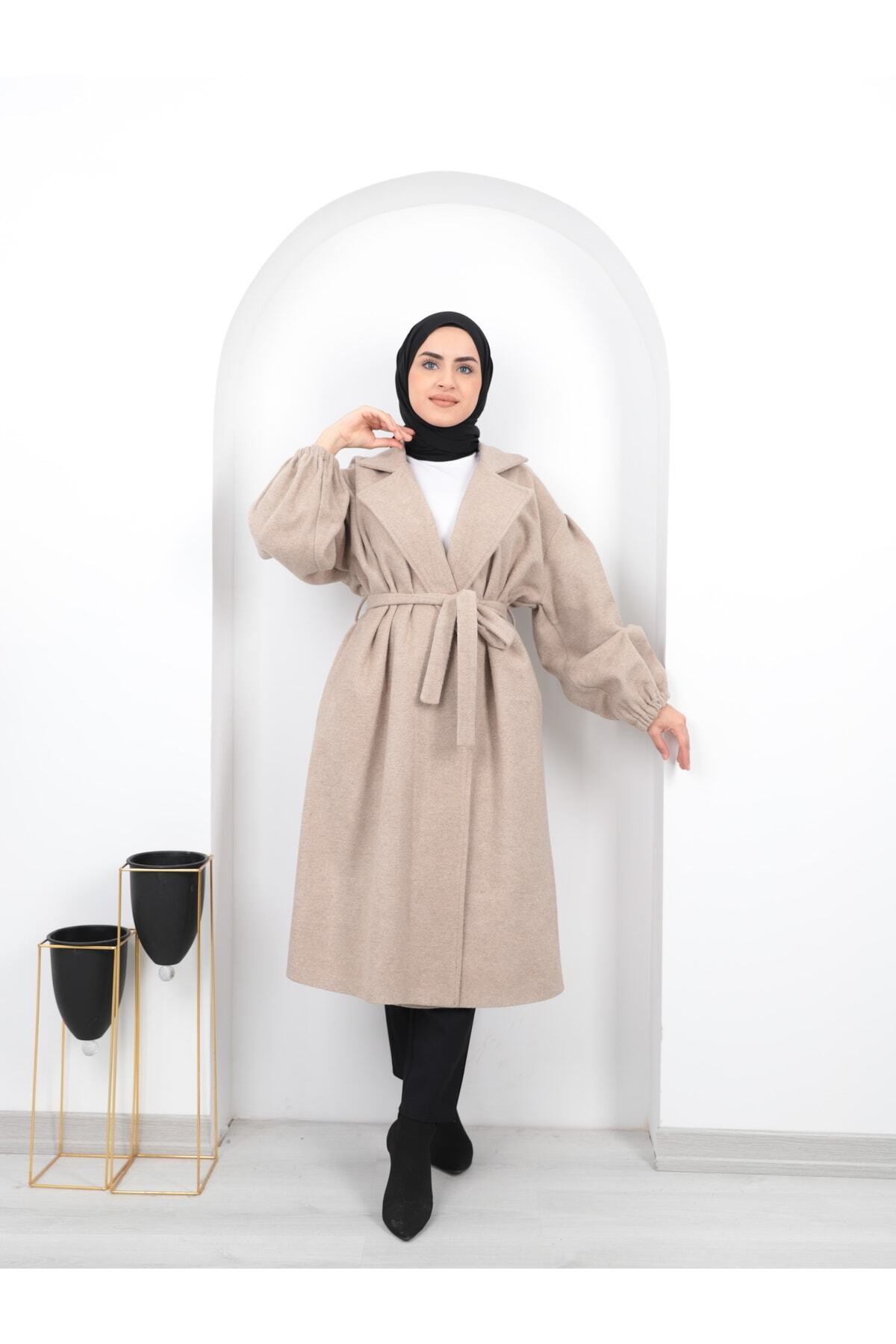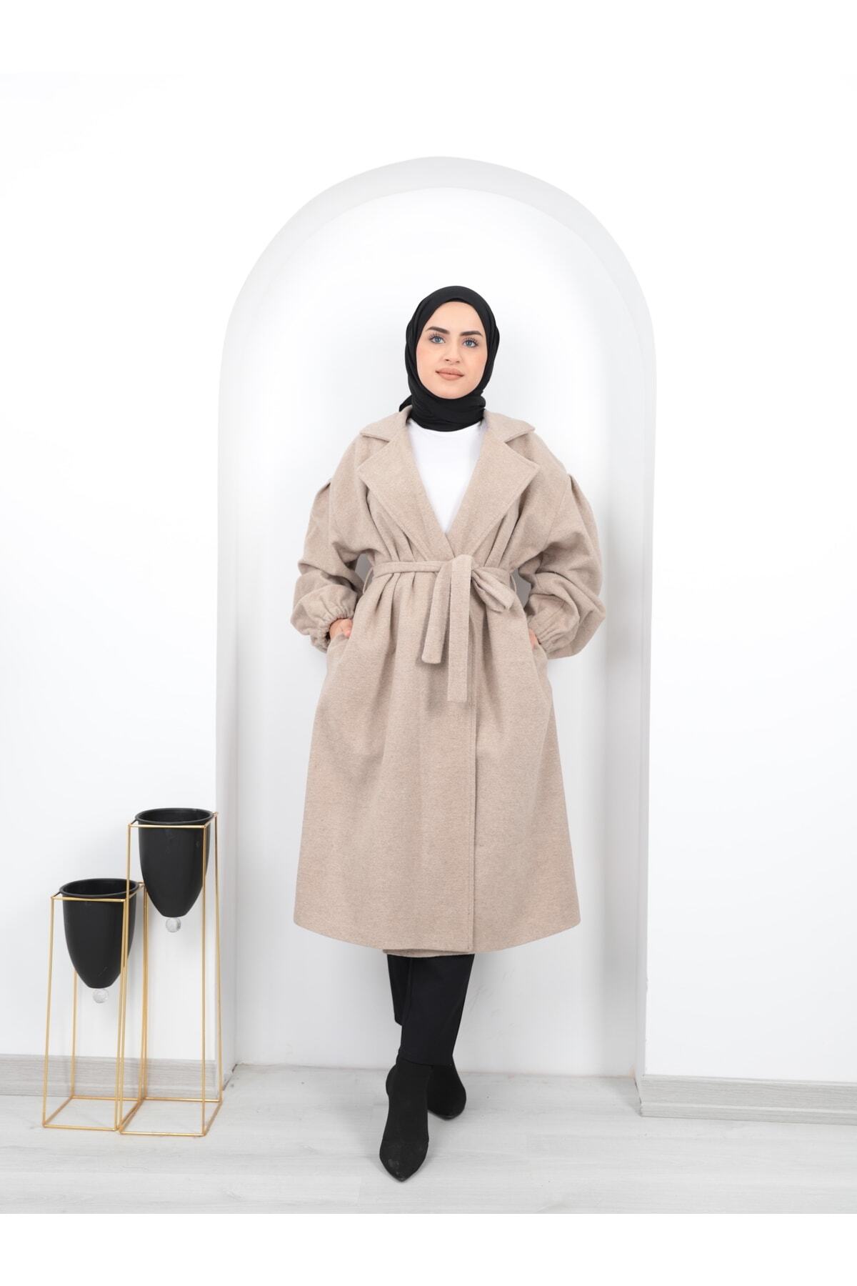 - Midi boy kesimi ile hem şıklığı hem de rahatlığı bir arada sunan balon kaşe kaban, günlük kullanım için idealdir.