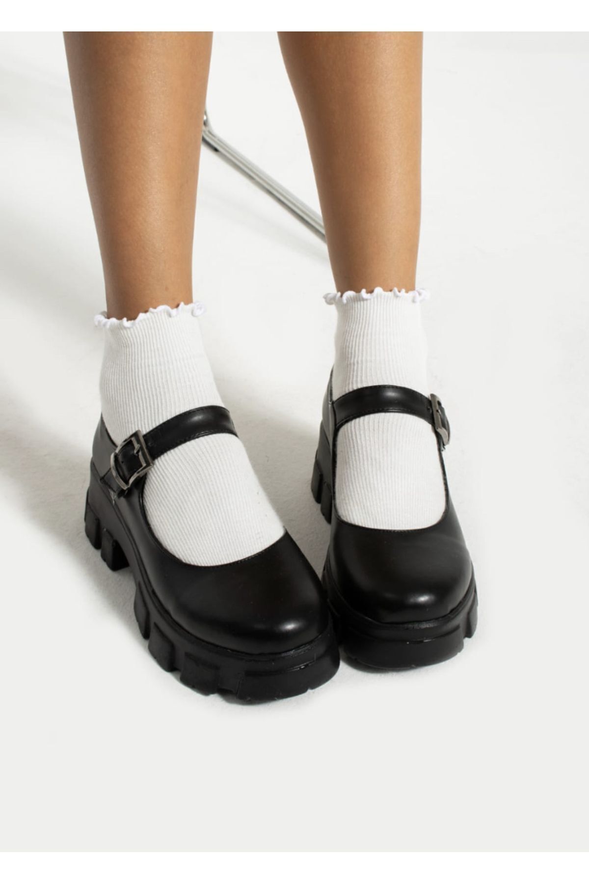 Kalın topuk tasarımı, dengeli ve stabil bir yürüyüş deneyimi sunar