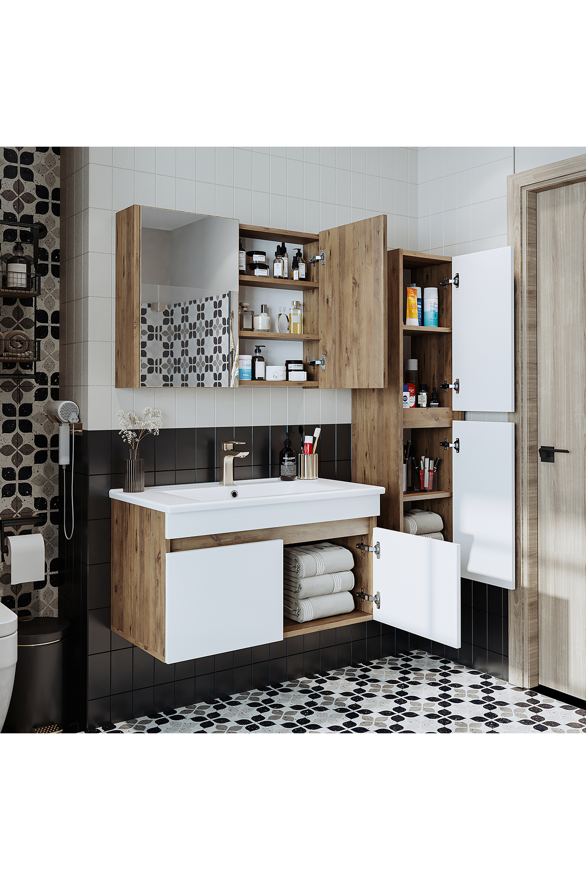 • Genişlik: 35 cm• Yükseklik: 130 cm• Derinlik: 31,8 cm Malzeme: -Musluk bataryası ve lavabo tıkacı ürüne dahil değildir. -Ürün yüzeyi Mat ahşap-beyaz renkten oluşmaktadır. -Üretimde kullanılan tüm malzemeler çevre ve çocuk sağlığı standartlarına uygundur. -Ürünlerimiz 18 mm kalınlığında halk arasında MDF olarak bilinen, sağlığa zararsız, kanserojen madde içermeyen Avrupa E1 kalite standartlarında melamin yüzeyden üretilmiştir. -Ürünlerimizde kullanılan bağlantı parçaları, kulplar, vidalar ve aksesuarlar, diğer tüm malzemeler gibi birinci kalite olup TSE’ ye uygundur. -Bağlantı sistemi olarak mümkün olan tüm bölümlerde öncelikle minifiks, kavela ve kabin vidası tercih ederek üretim yapılmaktadır, bu sayede ürünü defalarca ve zahmetsizce söküp kurabilirsiniz. Kurulum & MontajKurulum şeması, tüm vida vb bağlantı elemanları ürün paketinde bulunmaktadır. Yıldız tornavida ile kolayca kurulum yapabilirsiniz. Hızlı ve hatasız kurulum için parça üzerinde kurulum şeması ile uyumlu parça numaraları bulunmaktadır. Satış Sonrası Hizmet / YardımKargo Hasarları: Satın aldığınız ürünlerin hiç bir zarar görmeden tarafınıza ulaştırılabilmesi için uluslararası kabul görmüş standartlarda dolgu malzemeleri kullanılarak paketleme yapılmaktadır, buna rağmen nadiren de olsa kargo taşıması sürecinde ürünün bazı parçaları ezilme ve çatlama gibi hasarlar alabilmektedir. Hasarlı parçaların numaralarını ürüne ait montaj şemasından bakarak bize iletmeniz halinde hasarlı parçaların yenileri tarafınıza kargo ile gönderilmektedir. Kargo Daire Kapısına Teslimat hakkında: Kargo firmaları 0-30 Kg/desi ağırlığına kadar olan tüm ürünleri kapınıza kadar getirip teslim etmektedir. 30 Kg/desi. üstü olan ürünler kargo firmalarının belirlemiş olduğu kurallara göre bina kapısından teslim edilmektedir. 30 Kg üstü bir ürün alımı gerçekleştirdiğinizde ve kapıya teslimat yapılmama durumu ile karşılaştığınızda iletişime geçmeniz gereken ürünü adresinize getiren kargo firması olacaktır. Üretim Hatası / Eksik Parça / Eksik-Hatalı Aksesuar: Üretim süreçlerimizin tamamı bilgisayar kontrollü makineler ile yapılmaktadır, ayrıca üretim öncesi test ürünleri üretilerek üretimde oluşabilecek sorunların önüne geçilmektedir. Üretim aşamasında, paketleme aşamasında ve kargo öncesi tüm ürünlere kalite kontrol süreçleri uygulanmaktadır ancak buna rağmen çok düşük oranlarda üretim hataları oluşabilmektedir. Tarafınıza gönderilen üründe herhangi bir üretim hatası olması durumunda konuyla ilgili bizi bilgilendirdiğiniz de parça değişimi ile çözülebilecek bir sorunsa sadece yeni parça / parçalar gönderilmektedir.