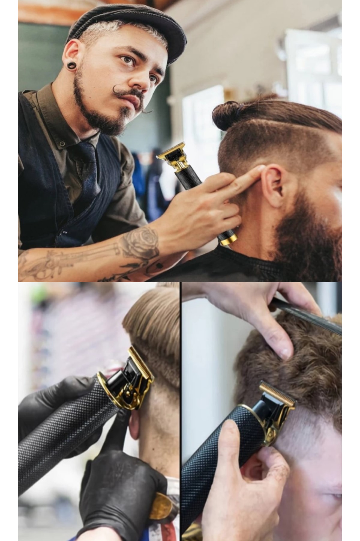 R4 Elektrikli Saç Tıraş Makinesi + M8 Saç Kesme-inceltme Makas 6inç/15cm + U3 Ustura