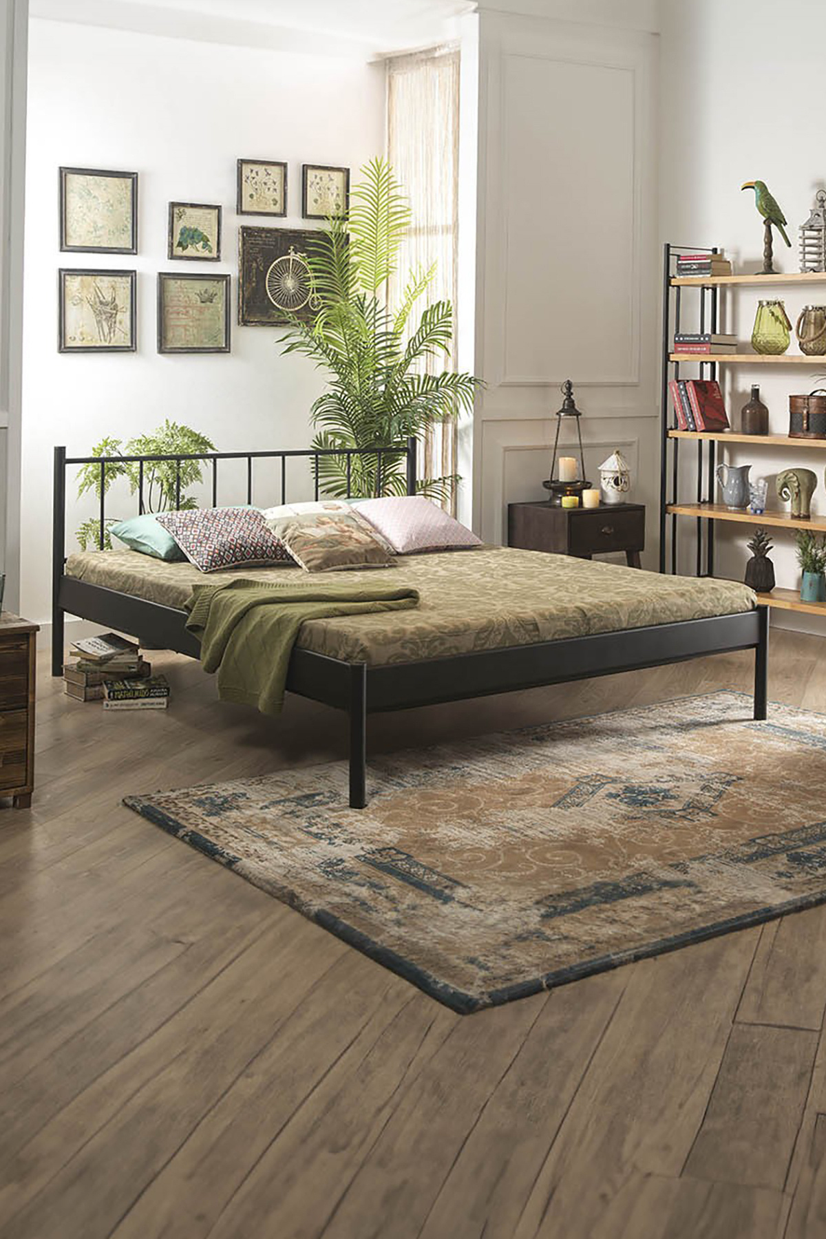 s tek kişilik ferforje metal karyola, şık ve çağdaş bir yatak odası atmosferi yaratır