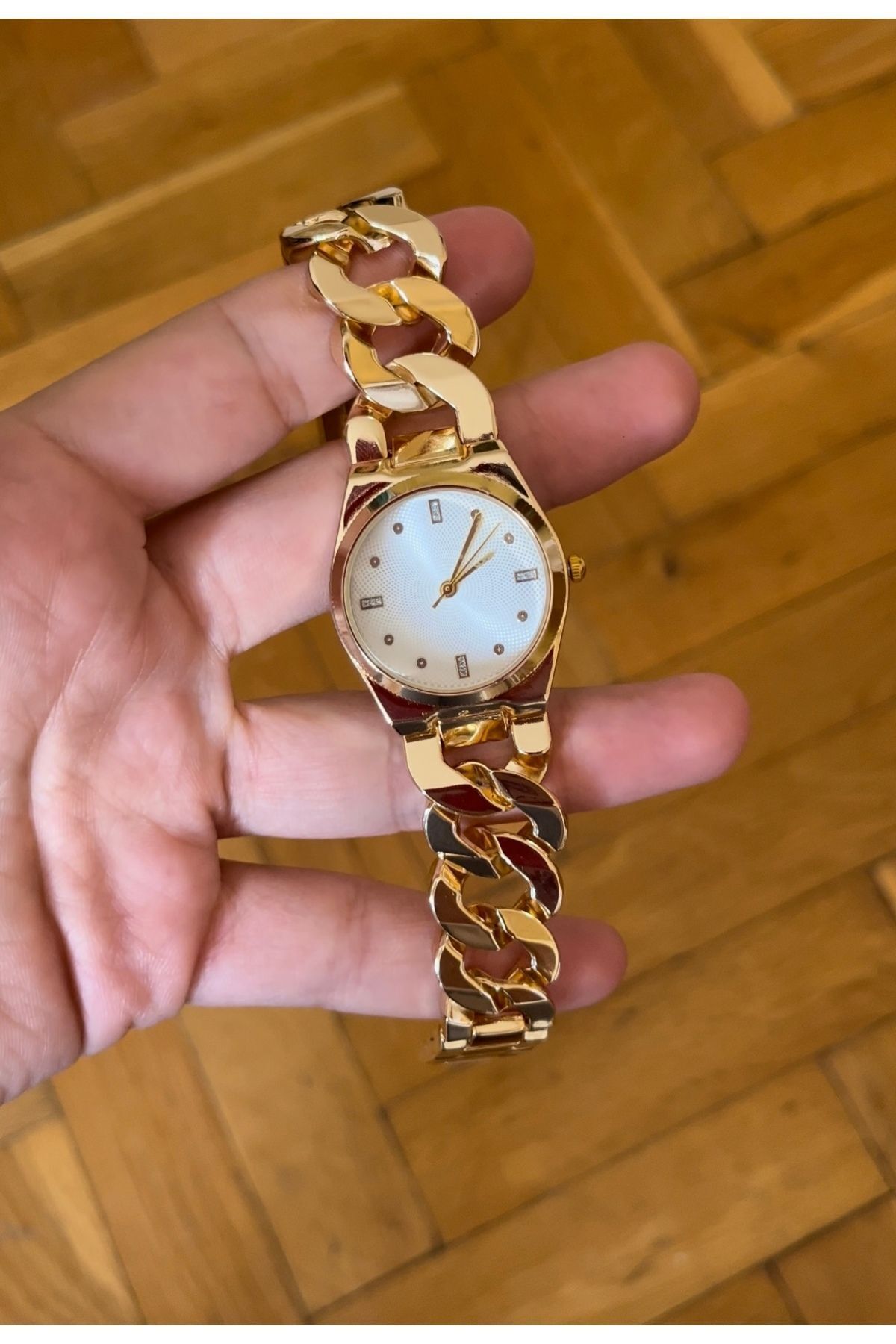 Altın rengi kasa tasarımı ile zarif bir stil ifade ederken, her türlü kıyafetle kolayca uyum sağlar