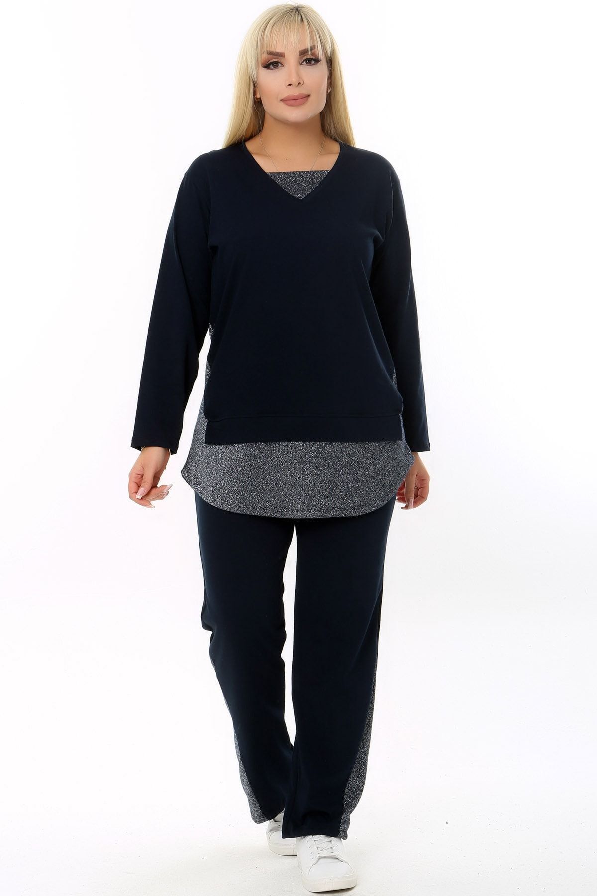 - Rahat kesimi ile günlük kullanım için ideal, büyük beden eşofman takımı.