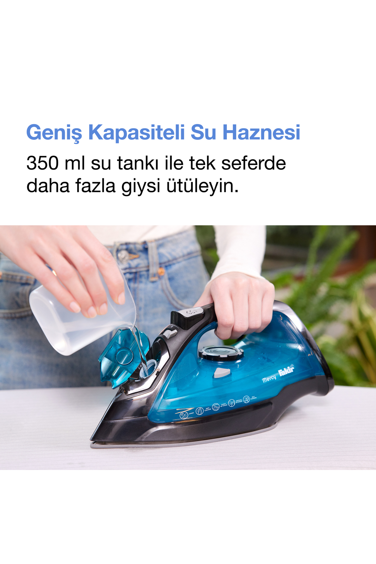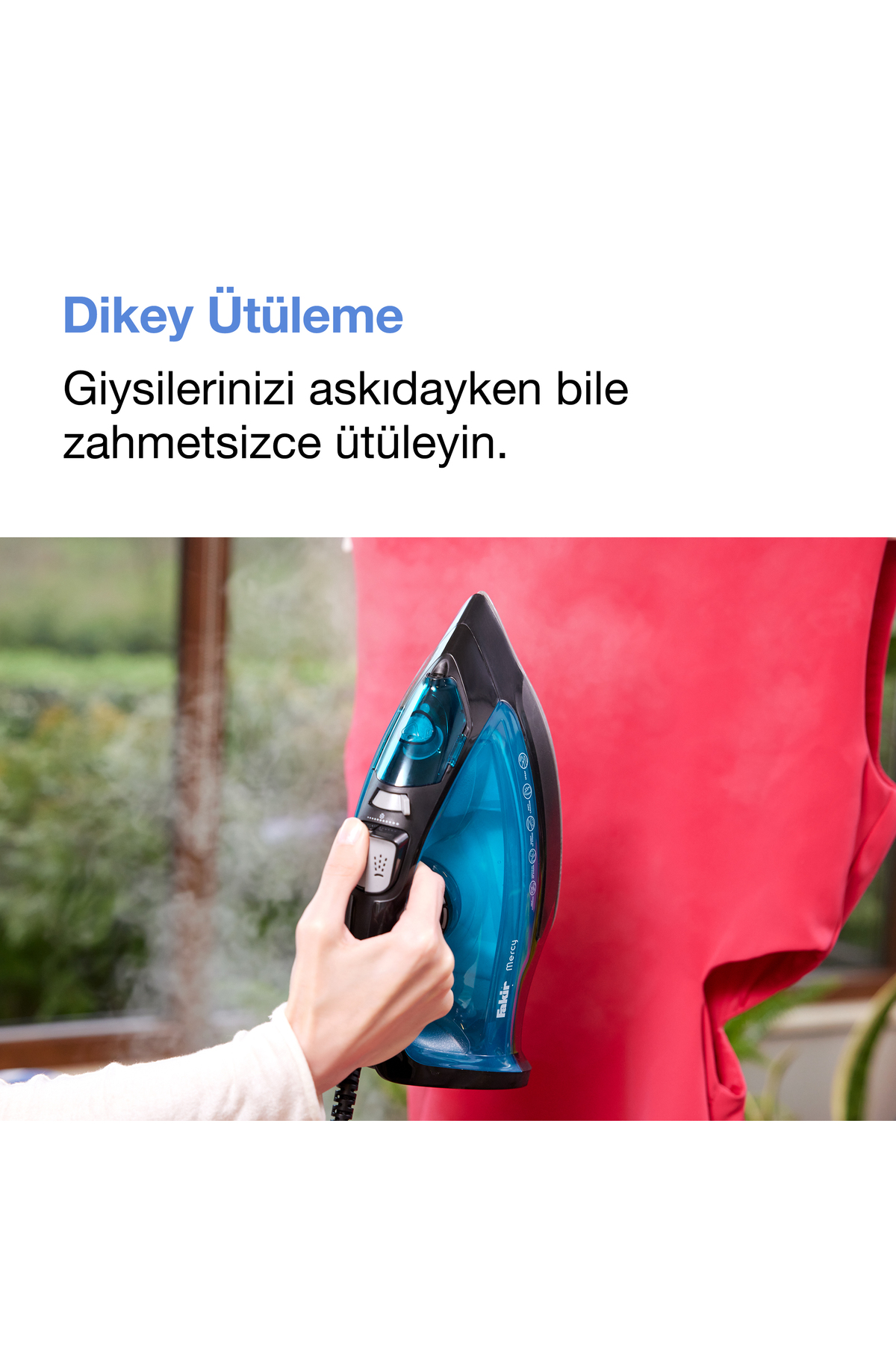 130 gr şok buhar gücü ve 25 g/dk sürekli buharı ile en zorlu kırışıklıkları anında açar. Ayarlanabilir termostat özelliği sayesinde, hassas kumaşlardan kotlara kadar her tür kumaşı güvenle ütüleyebilirsiniz. Dikey buhar özelliği ile giysilerinizi asılıyken ütüleyin