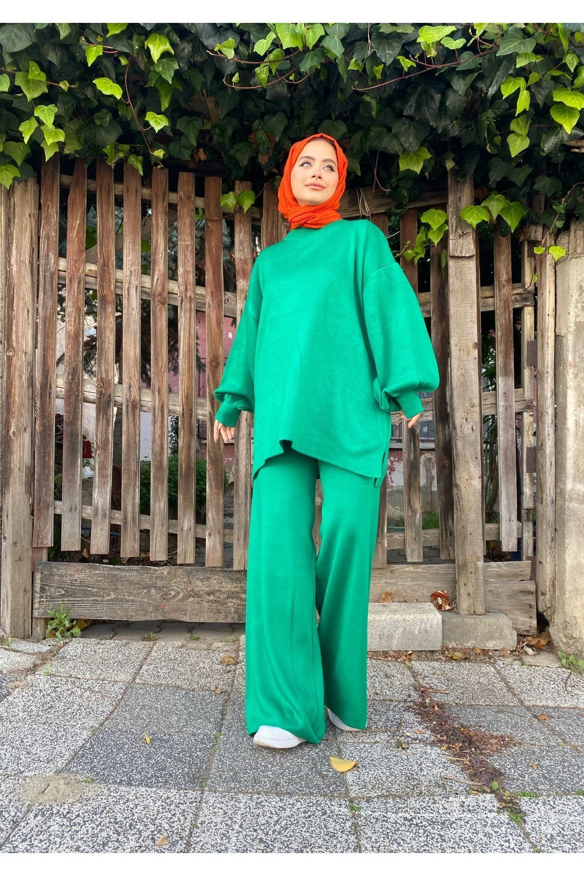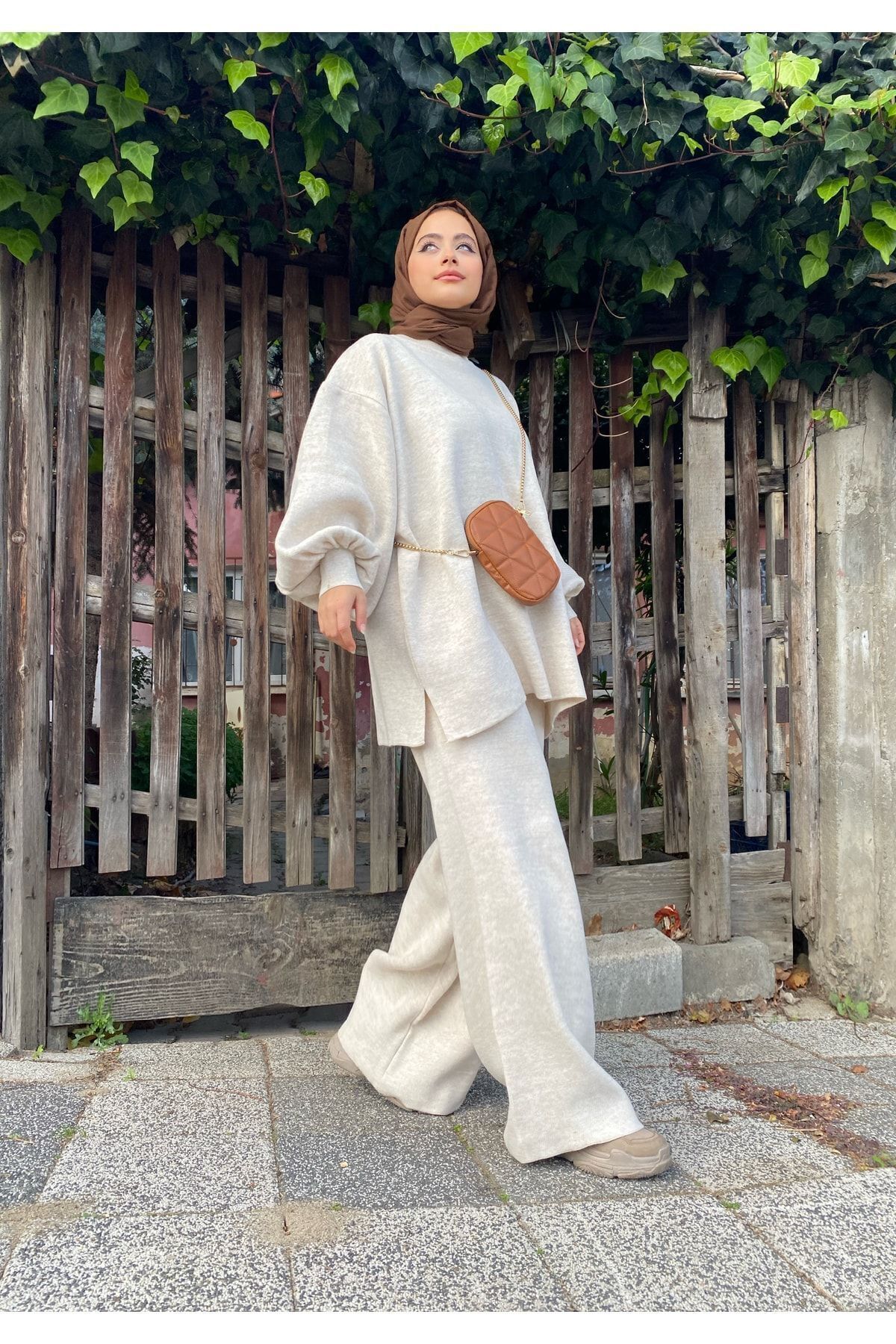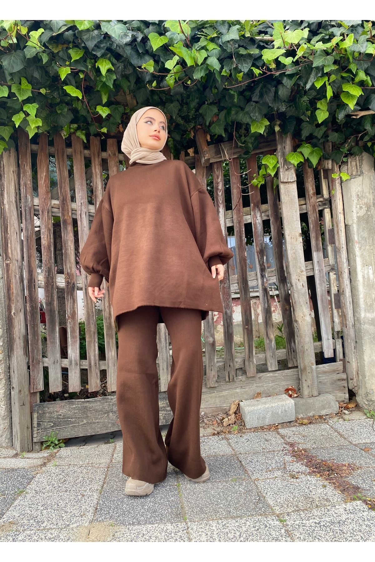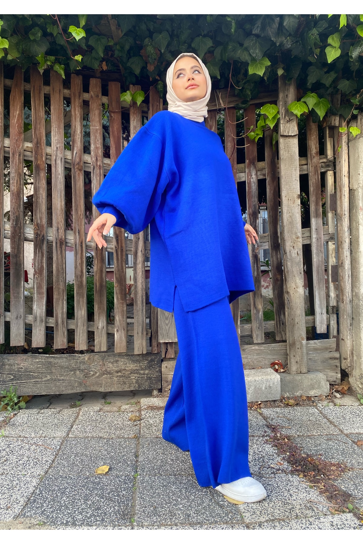 Öne Çıkan Özellikler: Balon kol detayı ile modern ve zarif duruş Yüksek kaliteli triko kumaş ile yumuşak doku Oversize rahat kesim – Gün boyu konfor Geniş paça pantolon ile özgür hareket imkanı Hem günlük hem de şık kombinler için ideal Nasıl Kombinlenir? Topuklu botlarla şehirli bir şıklık yaratın.