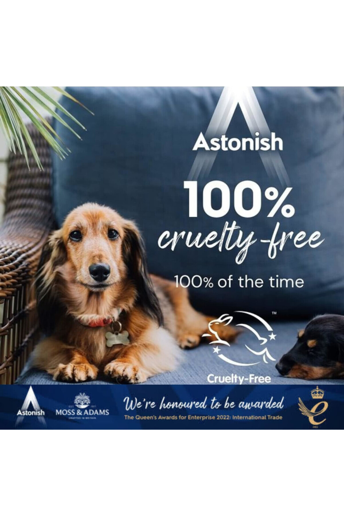 Hayvanlara Eziyet Etmeyen Marka Astonish temizlik ürünleri hiçbir zaman hayvanlar üzerinde test edilmemiştir ve herhangi bir hayvansal içerik veya hayvansal türeve sahip değildir