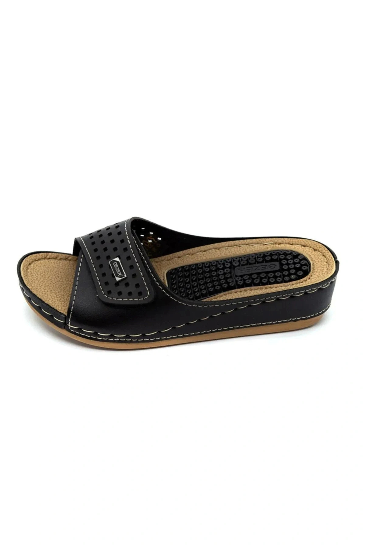 Gezer Masaj Tabanlı Ayarlanabilir Cırtlı Anatomik Tabanlı Siyah Anne Terliği Ürünümüz bire bir resimde görüldüğü kalitede ve renktedir, üzerinde hiç bir işlem yapılmamıştır.