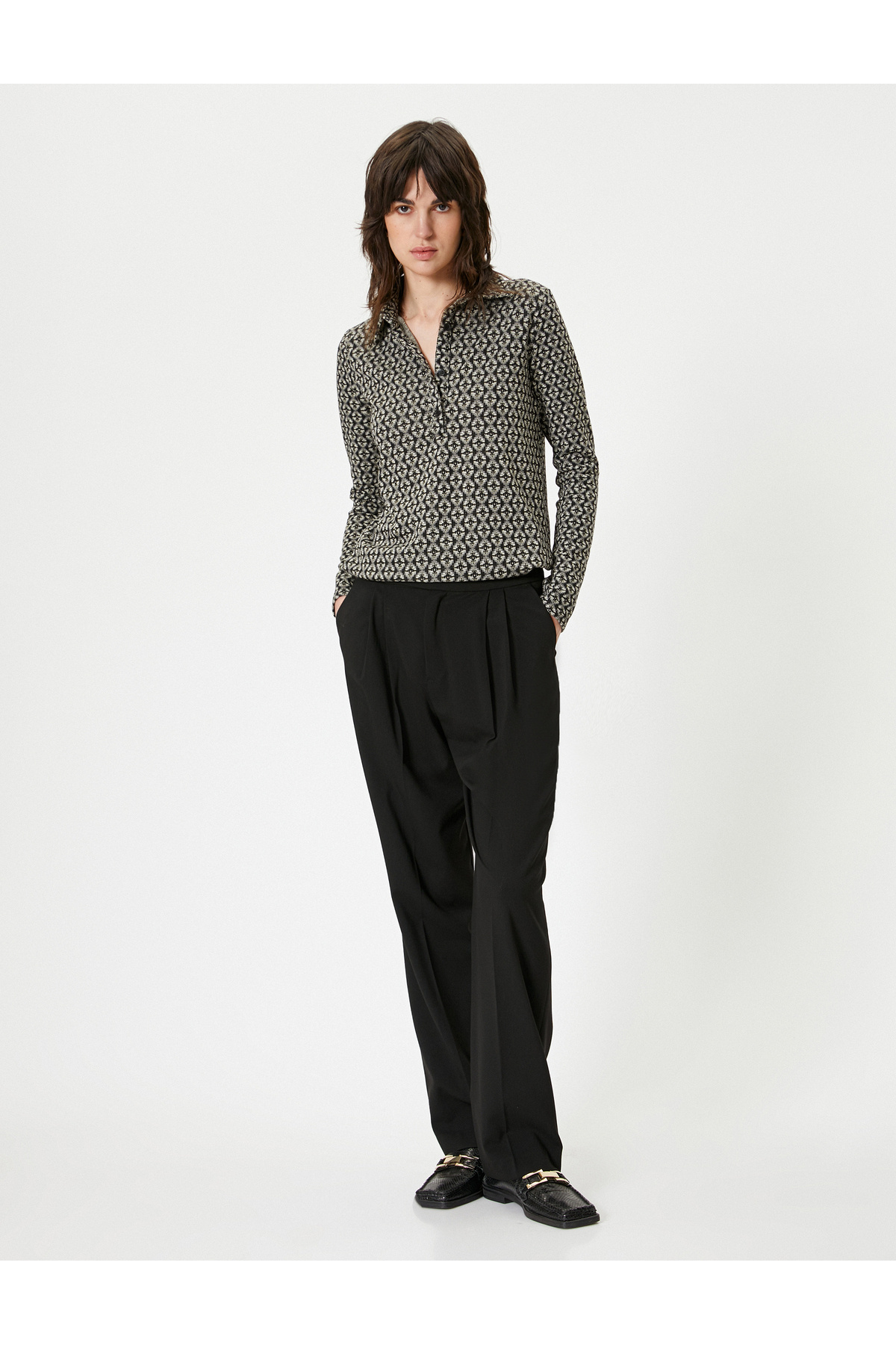 Melis Ağazat X Koton | Düğmeli, polo yaka, uzun kollu tişört.