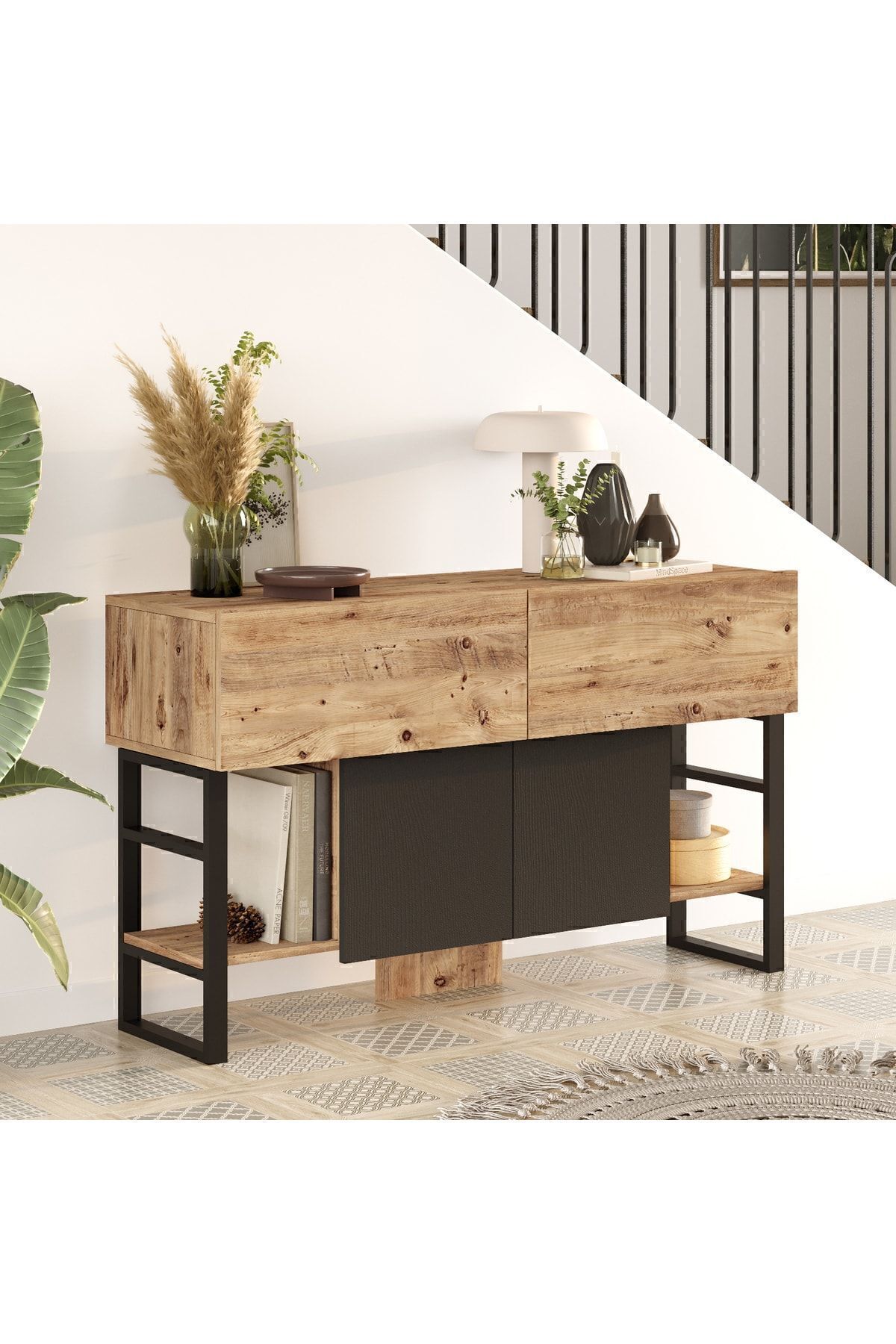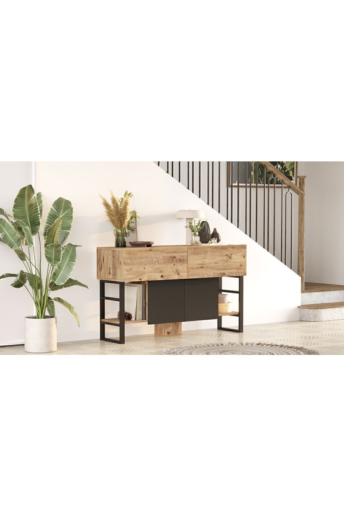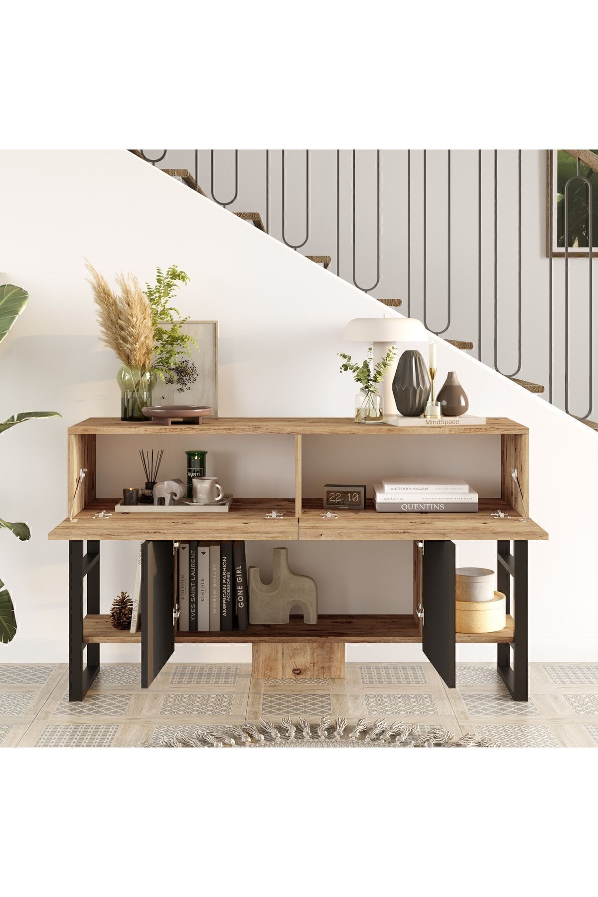 Yurudesign ML25 Iron Metal Konsol 4 Kapaklı Renk : Atlantik Çam ve Lareks Siyah