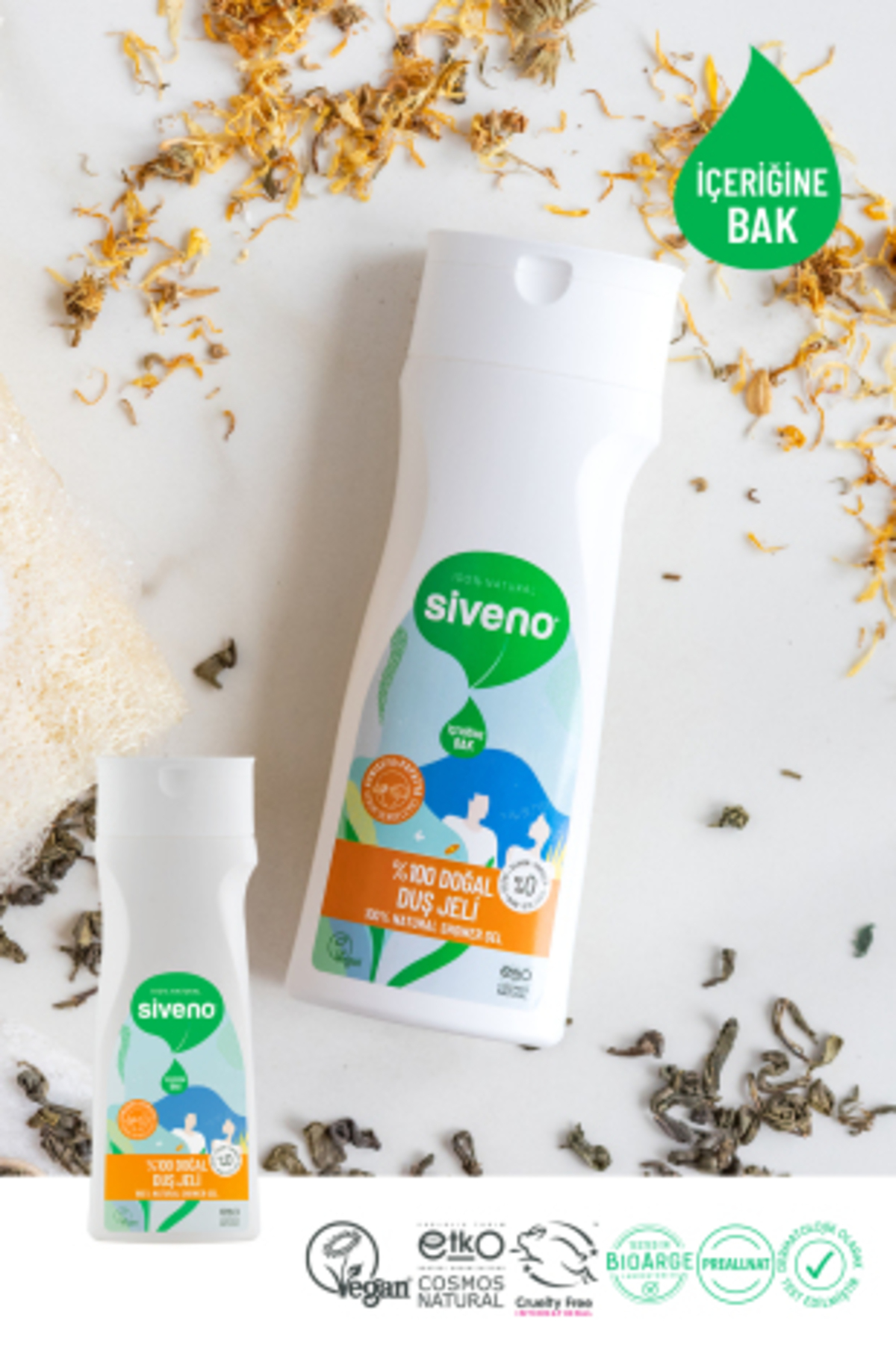 Siveno %100 Doğal Duş Jeli içeriğindeki Aynısefa Ekstresi ile cildi nemlendirir. Papatya Ekstresi ile cildi rahatlatır.