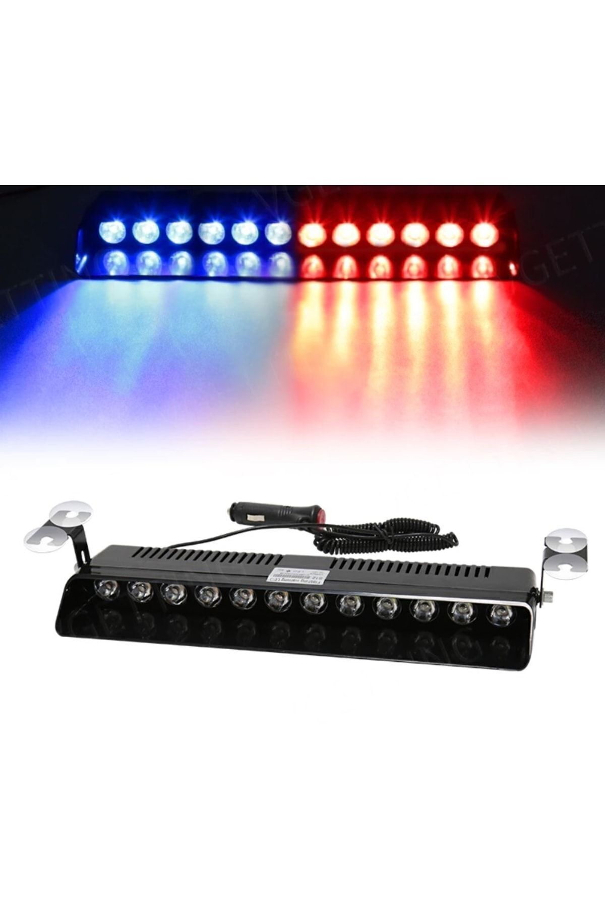S12 Lamba Cam İçi Vantuzlu 12 LED Uyarı Lambası – Kırmızı, Mavi, 12 Mod, Çakmaklık Girişli