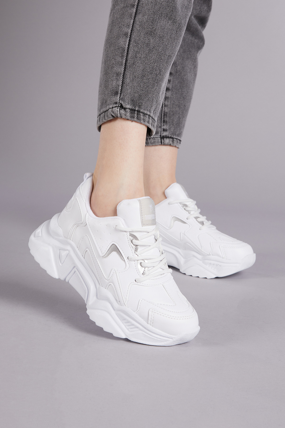 Kadın Beyaz Kiremit Rahat Kalıp Yüksek Taban Bağcıklı Spor Ayakkabı
