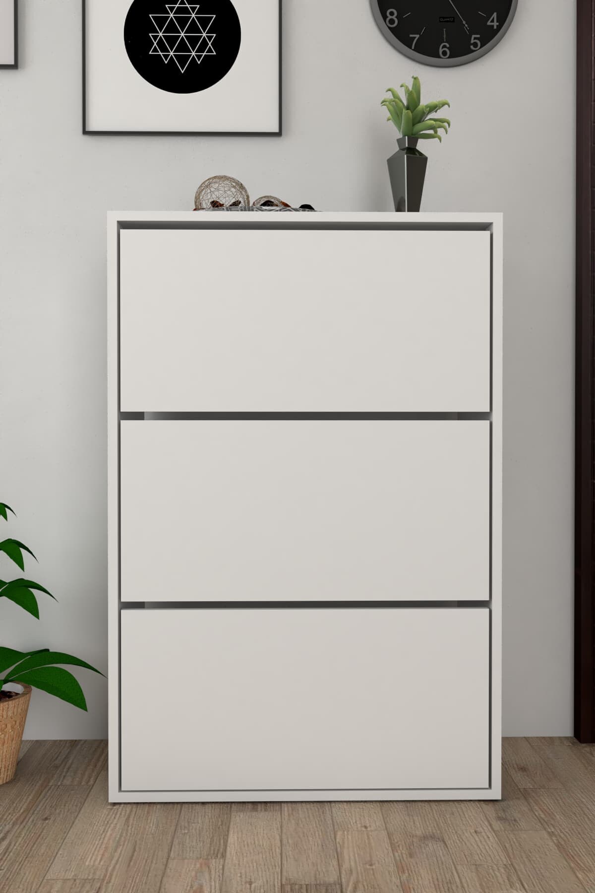 Moonlife 3 Kapaklı Kayar Raflı Ayakkabılık Ürün Ölçü ve Özellikleri:· Yükseklik : 110 cm· Genişlik : 73,6cm· Derinlik : 24 cm Ürün Rengi:Beyaz Ürün Özellikleri: Ergonomik kullanıma uygun ölçülerde tasarım· Koku oluşumunu engellemek için arkası açık üretilmiştir
