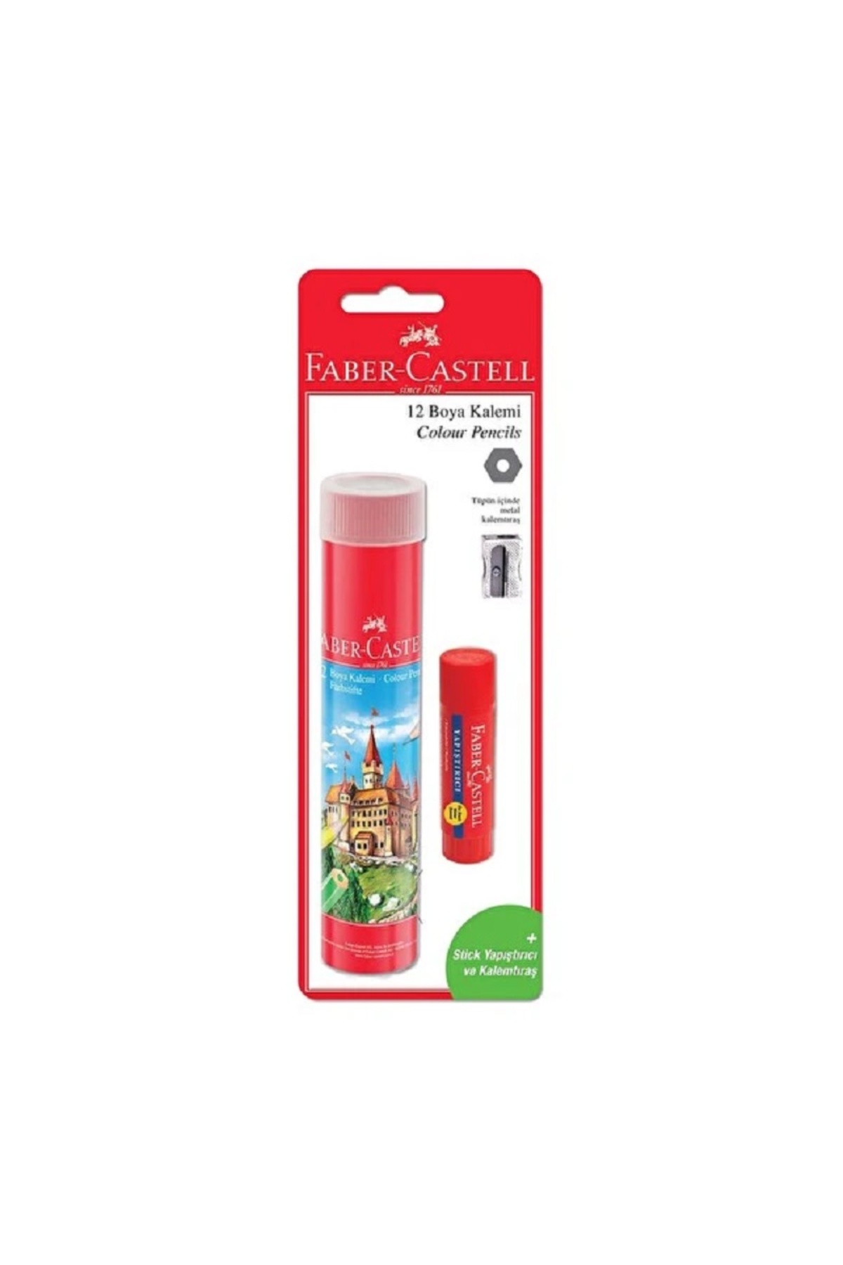Faber Castell 12'li Tüp Kuru Boya Kalemi (Stick Yapıştırıcı ve Kalemtraş Hediyeli)