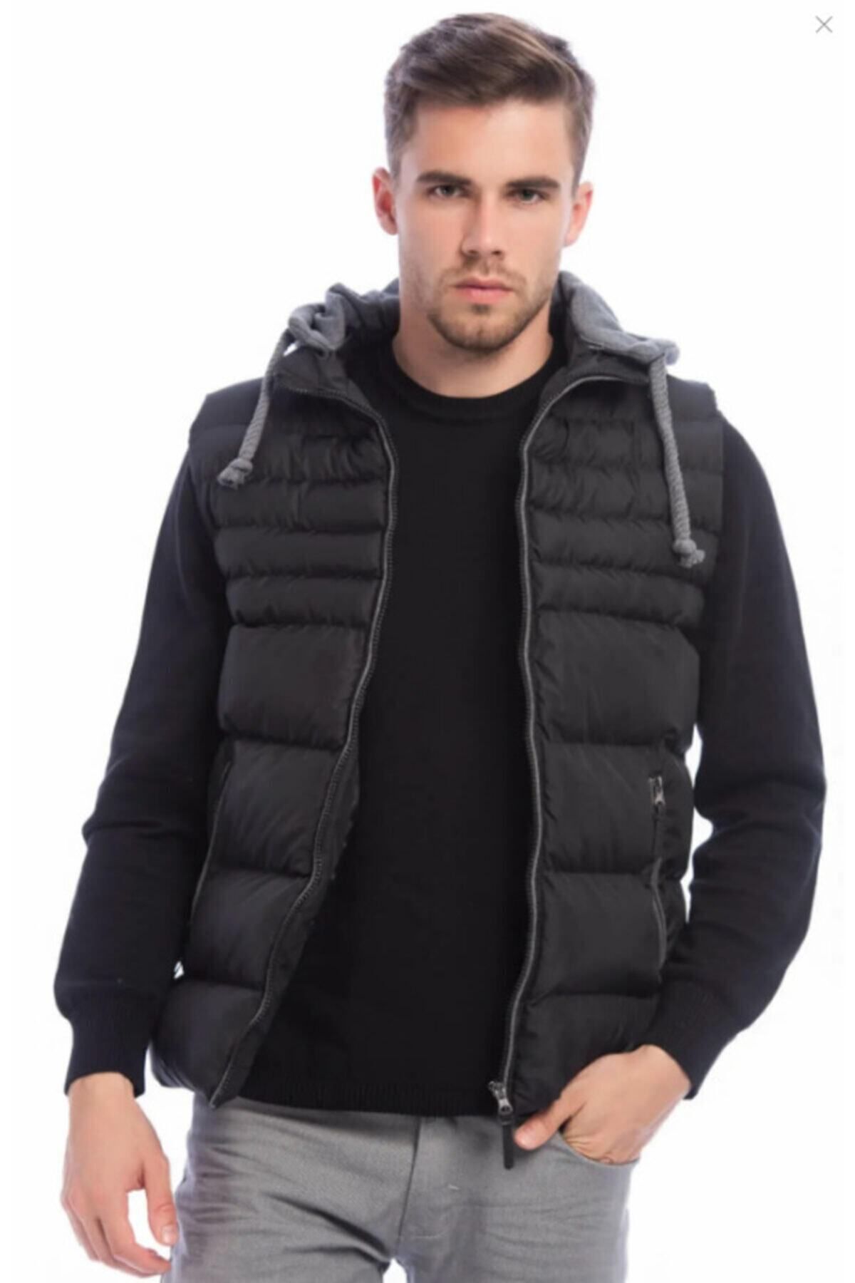 Erkek Siyah Çıkarılabilir Kapüşonlu Şişme Yelek