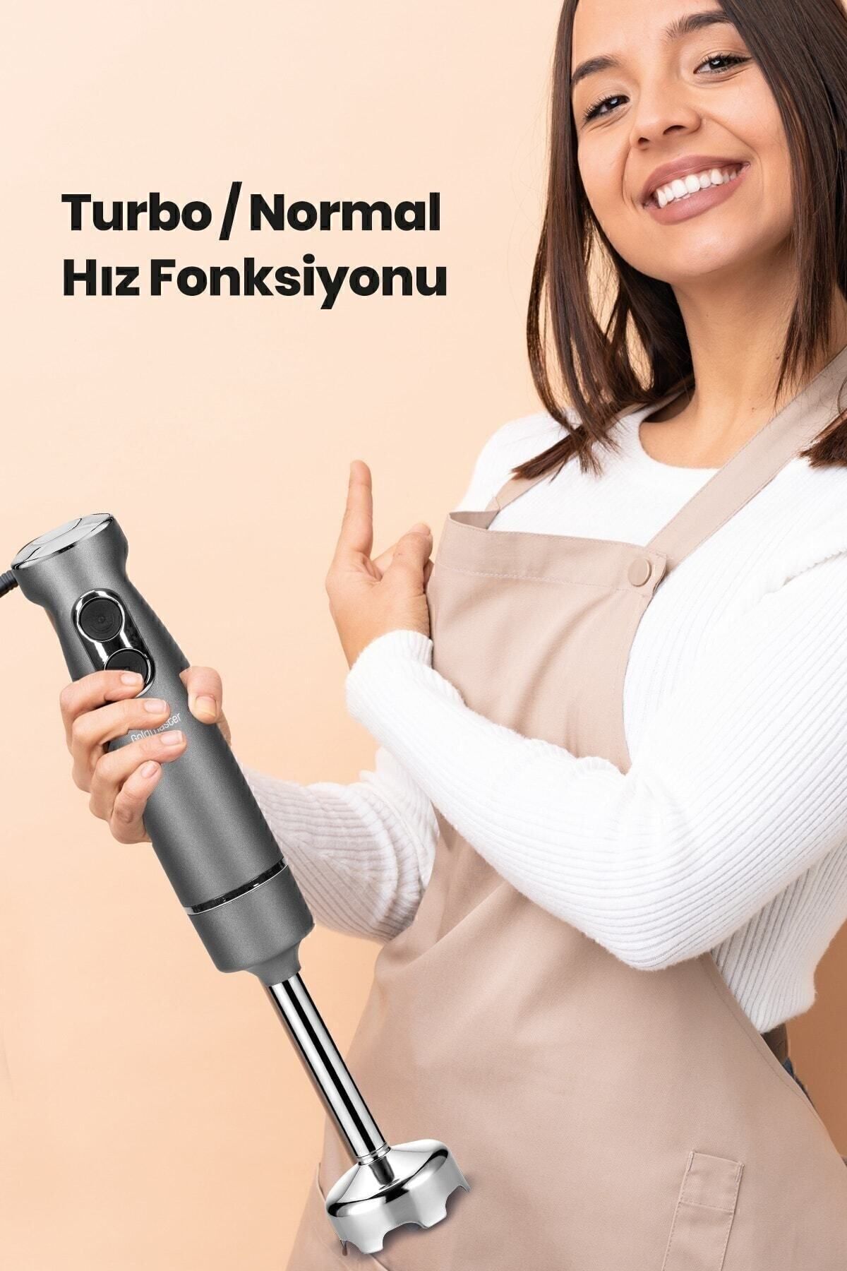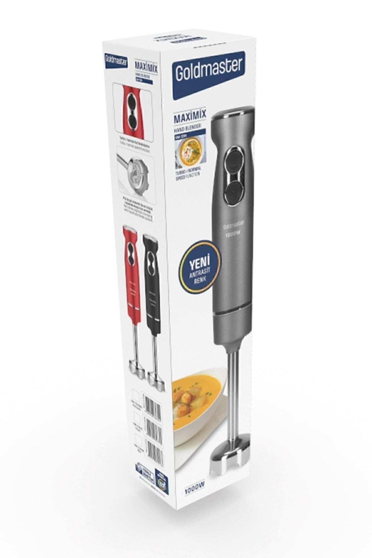 Maximix Antrasit 1000 Watt 4 Bıçaklı Paslanmaz Çelik Turbo Hız Ayarlı El Blender 1000W güçlü performans