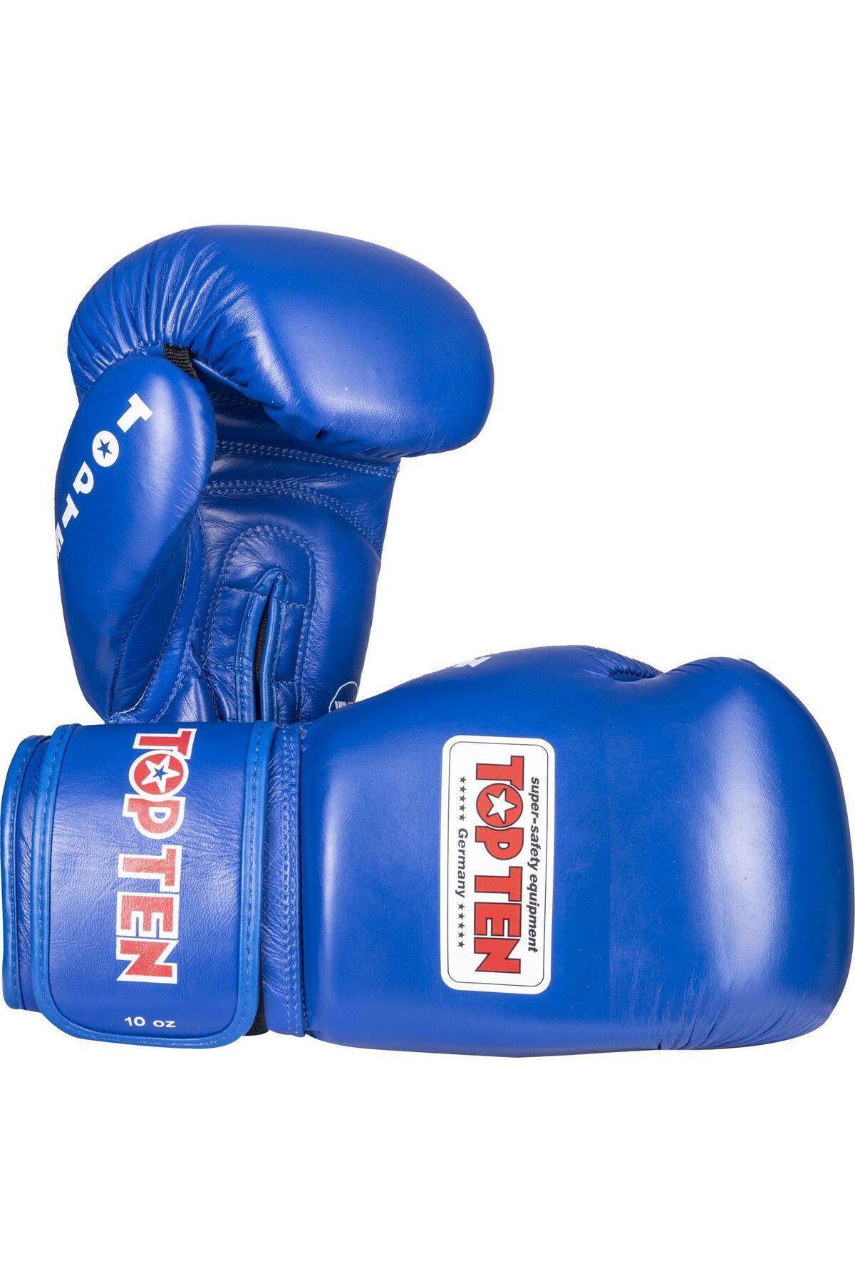 nefes alabilirlik ve sağlamlık avantajı sunmaktadır. Eldivenin iç kısmında bulunan küçük hava delikleri havanın dolaşmasını sağlar ve terlemeyi engeller. 10 oz ve 12 oz ağırlık boyutlarının yanı sıra mavi veya kırmızı renk seçimi ile “ IBA” müsabaka esnasında tüm beklentileri başarıyla karşılar. Sunduğu ek avantajlar: - Uluslararası Boks Birliği (IBA) resmi müsabaka eldiveni - Hakiki sığır deri - Yüksek kalite - PPS köpük dolgu Berlin Teknik Üniversitesi (TU Berlin) ile yakın işbirliği içinde, "IBA" boks eldiveninde kullanılan PPS köp üğü test edildi ve hatta benzersiz darbe emilimi bilimsel olarak doğrulandı. Çok sayıda Dünya Şampiyonası ile Barselona, Atlanta ve Sidney gibi Olimpiyat Oyunlarına katılım, TOP TEN boks eldivenini “ IBA” tarihine çoktan yazdırdı. TOP TEN "IBA” boks eldiveninin bu başarısında birçok ince düşünülmüş ayrıntı yatıyor. Darbe kuvvetlerinin yüksek oranda azaltılması ve dolgunun özel şekli, onu boksta vazgeçilmez bir araç haline getirdi. Sabit başparmak ve bilekteki güçlü dolgulu cırt cırt bant, Association Internationale de Boxe tarafından test edilen TOP TEN “ IBA” müsabaka eldiveninin güvenlik onayını tamamlamıştır. Sığır derisi, doğadan gelen yüksek kaliteli bir hammaddedir. Biz de bu hammaddeye havalı bir tasarım kazandırıyoruz. Deri üretiminde tabaklama en önemli adımdır. Hem kırmızı hem de mavi ana renklerin yanı sıra TOP TEN ve IBA onaylı logo bu eldiveni kusursuz hale getiren son dokunuştur.