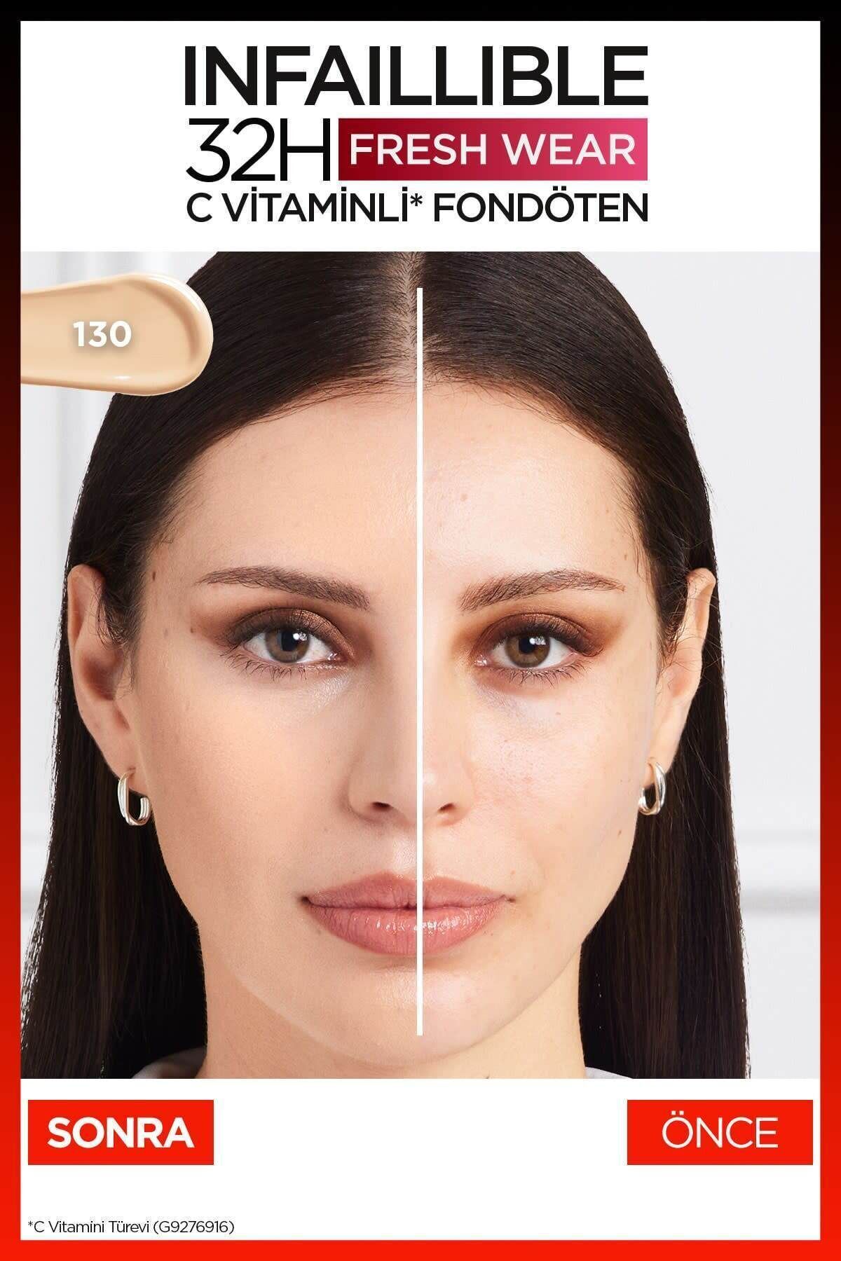 Infaillible ailesinin yüksek kapatıcı ve gün boyu kalıcı Yüksek kapatıcı etki Pürüzsüz ve doğal bitiş Daha parlak ve ışıltılı bir cilt Cilde nefes aldıran formül Maskeye, suya ve terlemeye dayanıklı SPF 25