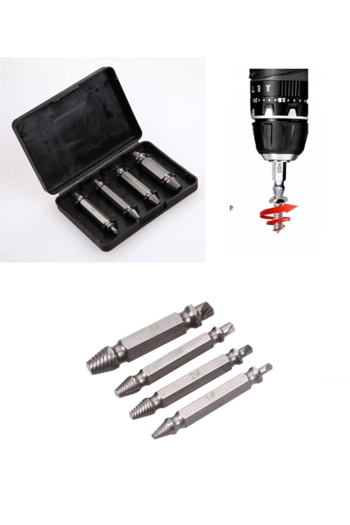 4 parçadan oluşan vidalı sökme takımı, herhangi bir matkap ve herhangi bir vida boyutu veya cıvatasıyla çalışır.