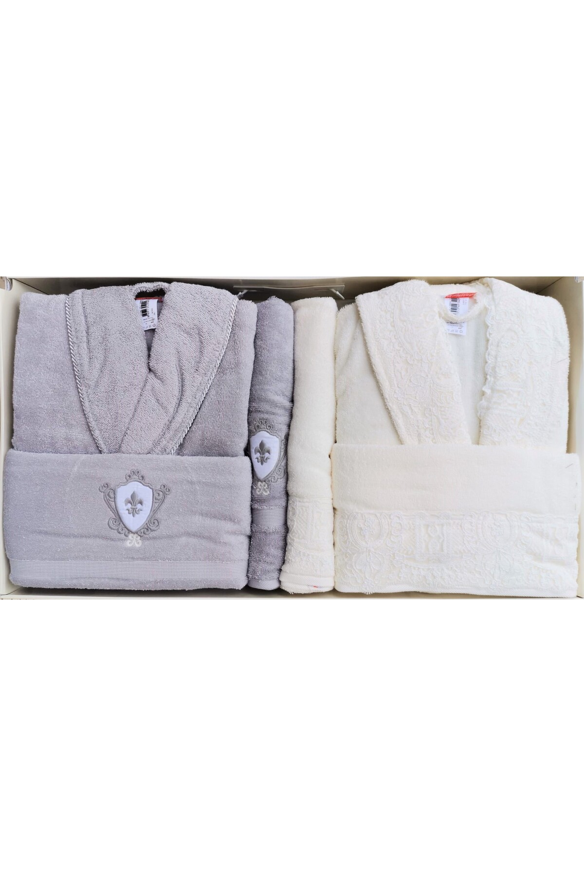 Özdilek Wedding Aile Bornoz Seti Krem-Gri% 100 PAMUK Kumaş Dokuması Pamuk Paket İçeriği 2 Adet Bornoz, 2 Adet Yüz Havlusu, 2 Adet Banyo Havlusu, 2 Adet Terlik Tipi Bornoz Seti..