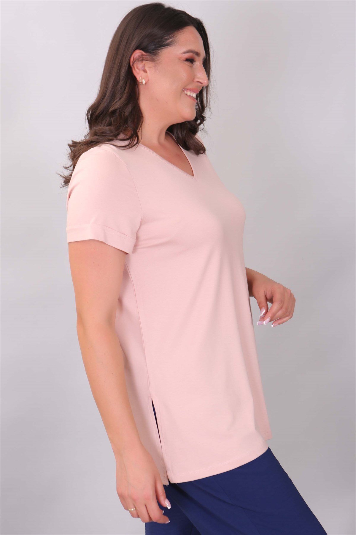 V Yakalı Basıc Pudra Bluz Ürün Özellikleri: Rahat kalıbı ile konforlu kullanım Esnek kumaşı ile hafif bir dokuya sahip Yan yırtmaç detaylı V yaka ve kısa duble kol Ürün Açıklaması: V yakalı kısa duble kol yan yırtmaçlı basıc bluz günlük yaşamınızı kolaylaştıracak harika parçalardan biri olacak
