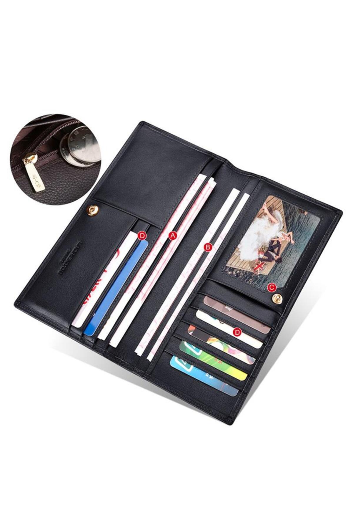 Geniş iç hacmi ile birden fazla kart ve nakit para taşıma olanağı sunar.