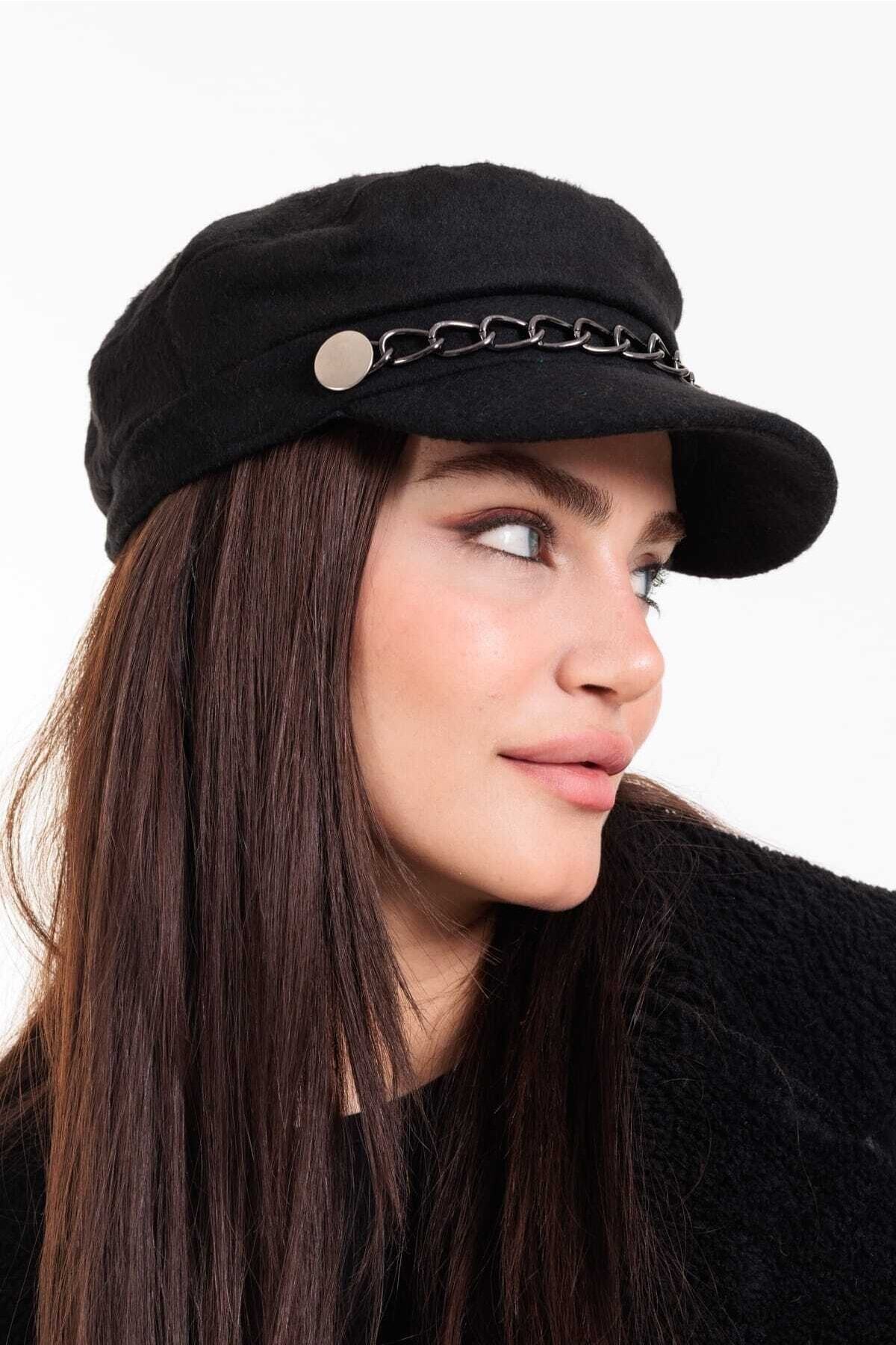 Kadın Kışlık Şapka Zincir Aksesuarlı Kaşe Kumaş Kaptan Model Ürünümüz Türkiye'de kalite standartlarına uygun olarak üretilmiştir.