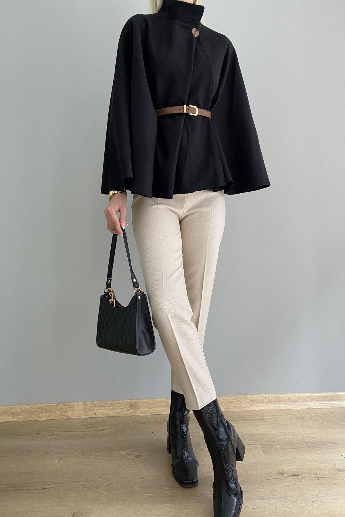 Belinizi zarifçe vurgulayan kemer detayı ile feminen bir dokunuş katılır