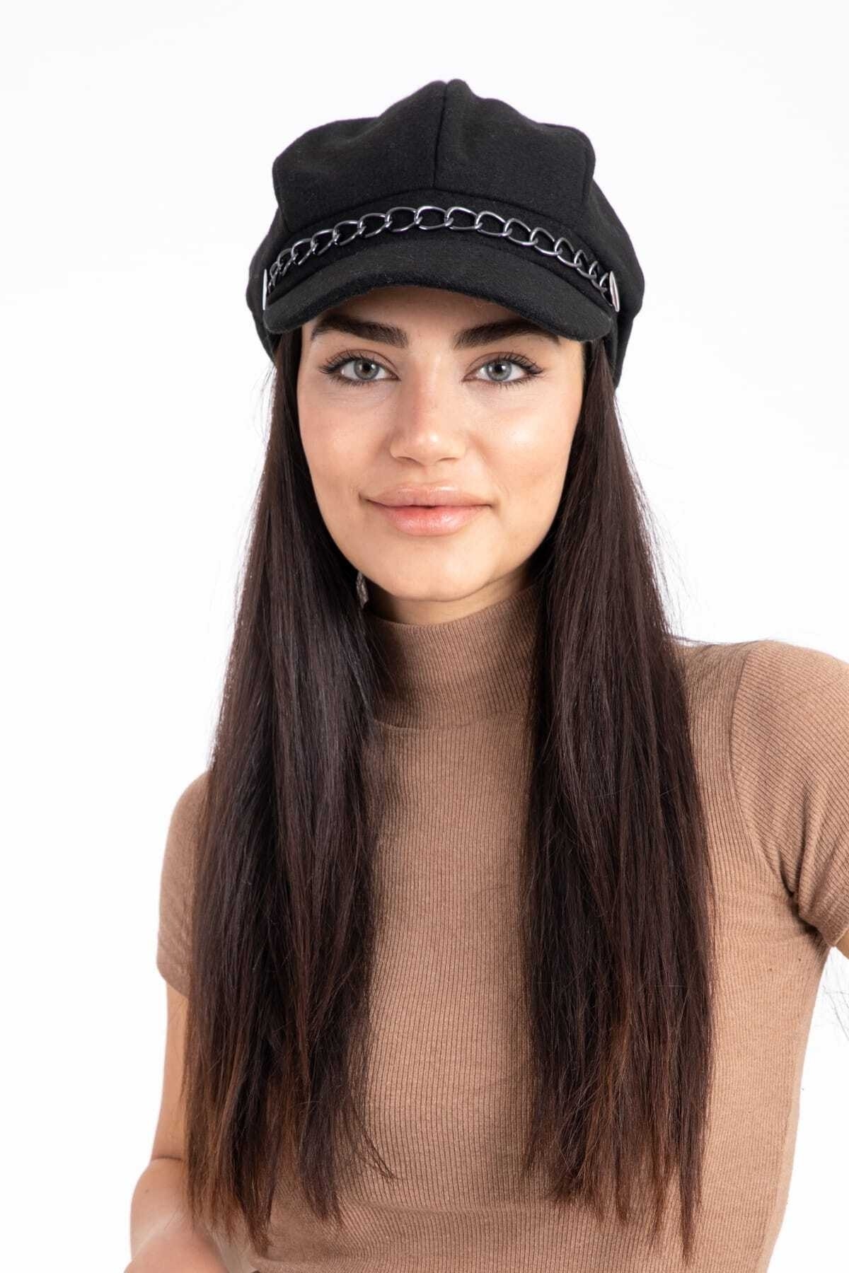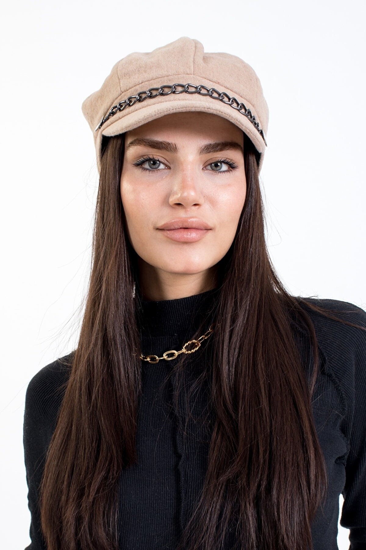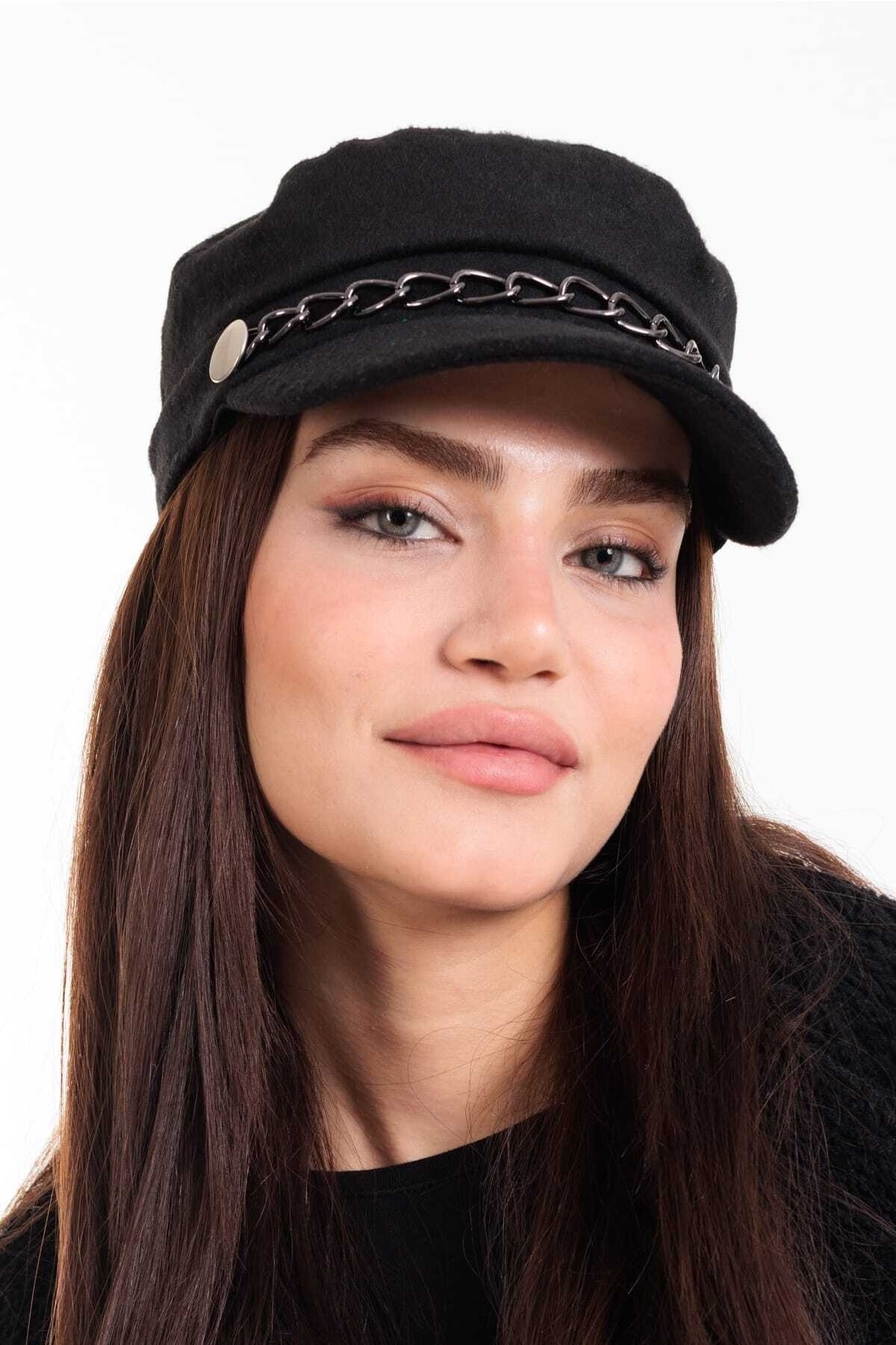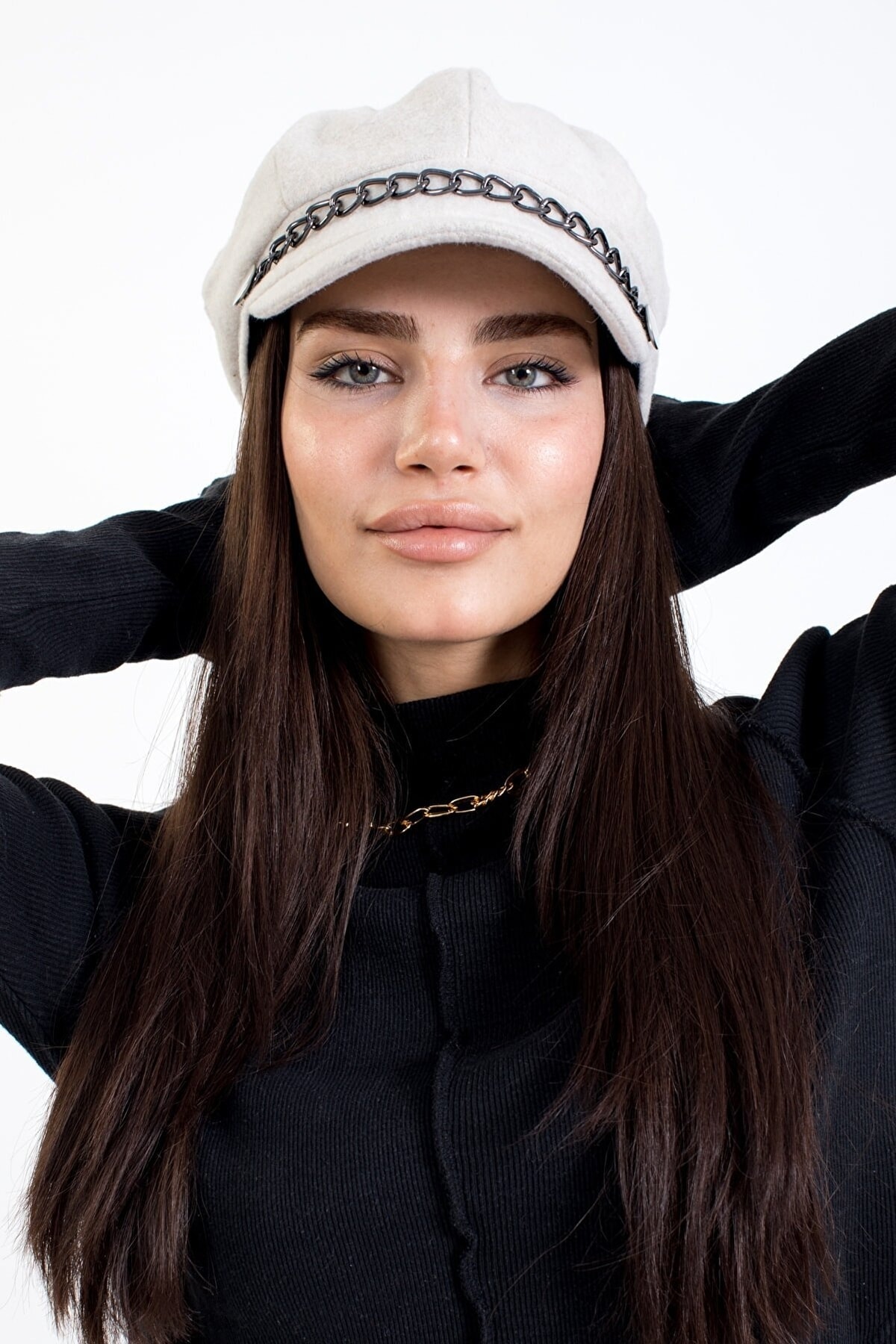 Kadın Kışlık Şapka Zincir Aksesuarlı Kaşe Kumaş Baretta Model Ürünümüz Türkiye'de kalite standartlarına uygun olarak üretilmiştir.