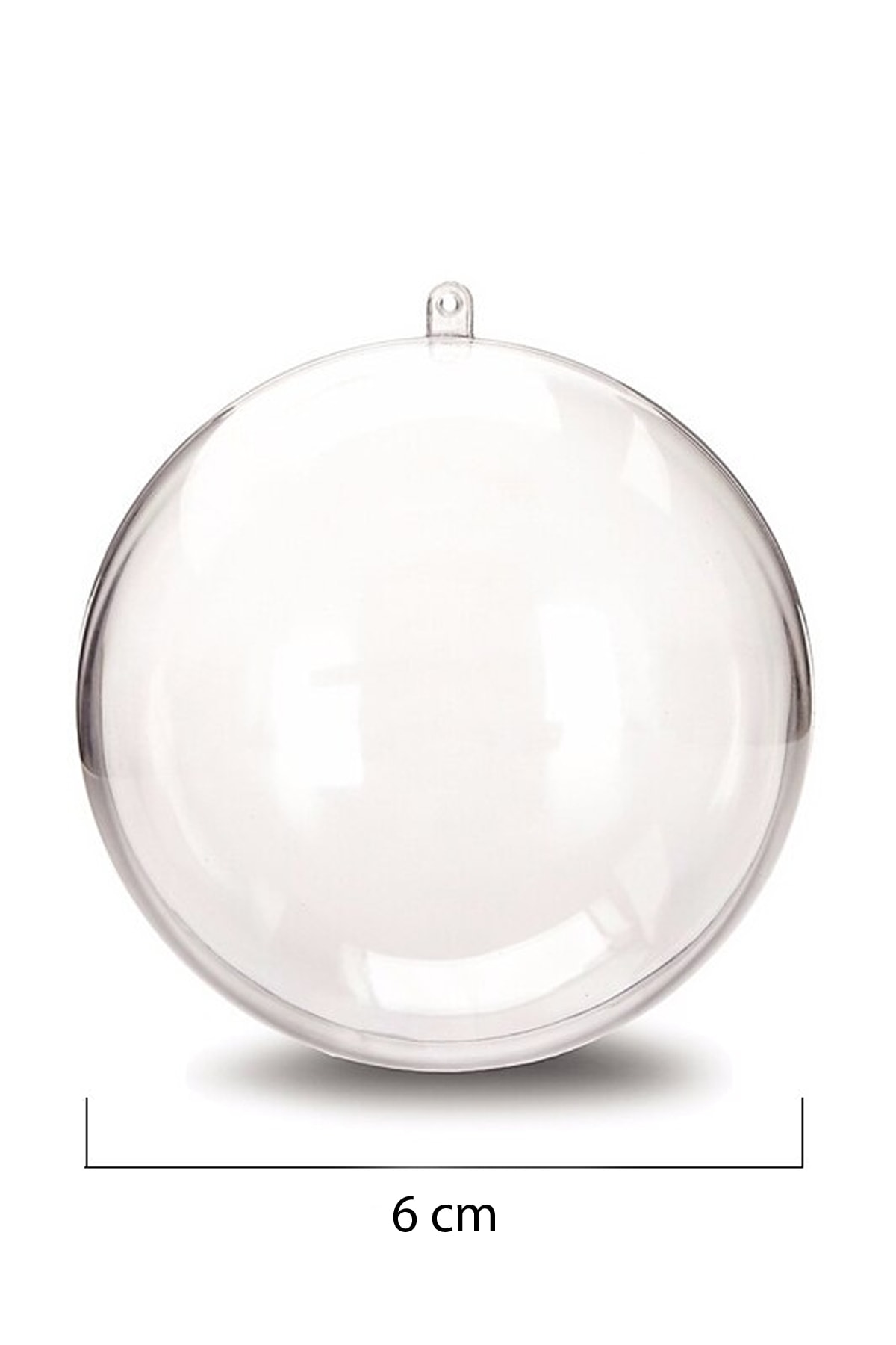 Plastik Top Geçmeli Şeffaf 6 Cm Çapında, Süsleme Topu, Yılbaşı Topu 4 Adet
