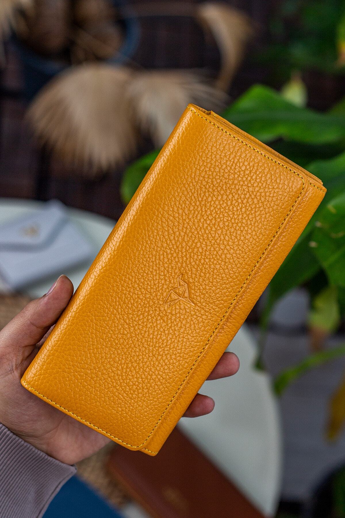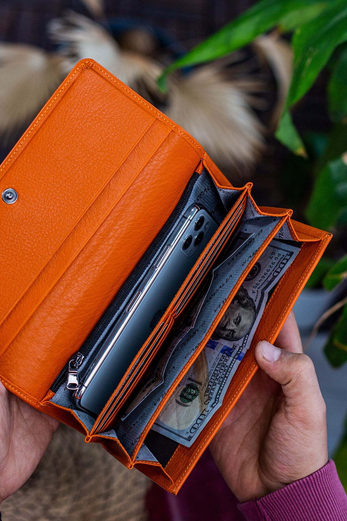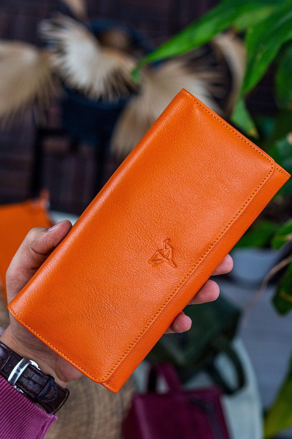 3 adet ayrı körüklü bölme, 2 adet gizli evrak bölmesi ve 1 adet fermuar kapamalı bozuk para bölmesi vardır.