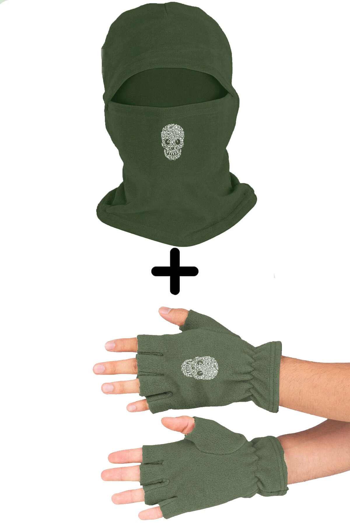 Baskılı deseni ile dikkat çeken bu set, bisiklet kuru kafa polar kar maskesi ve kesik eldivenlerden oluşur