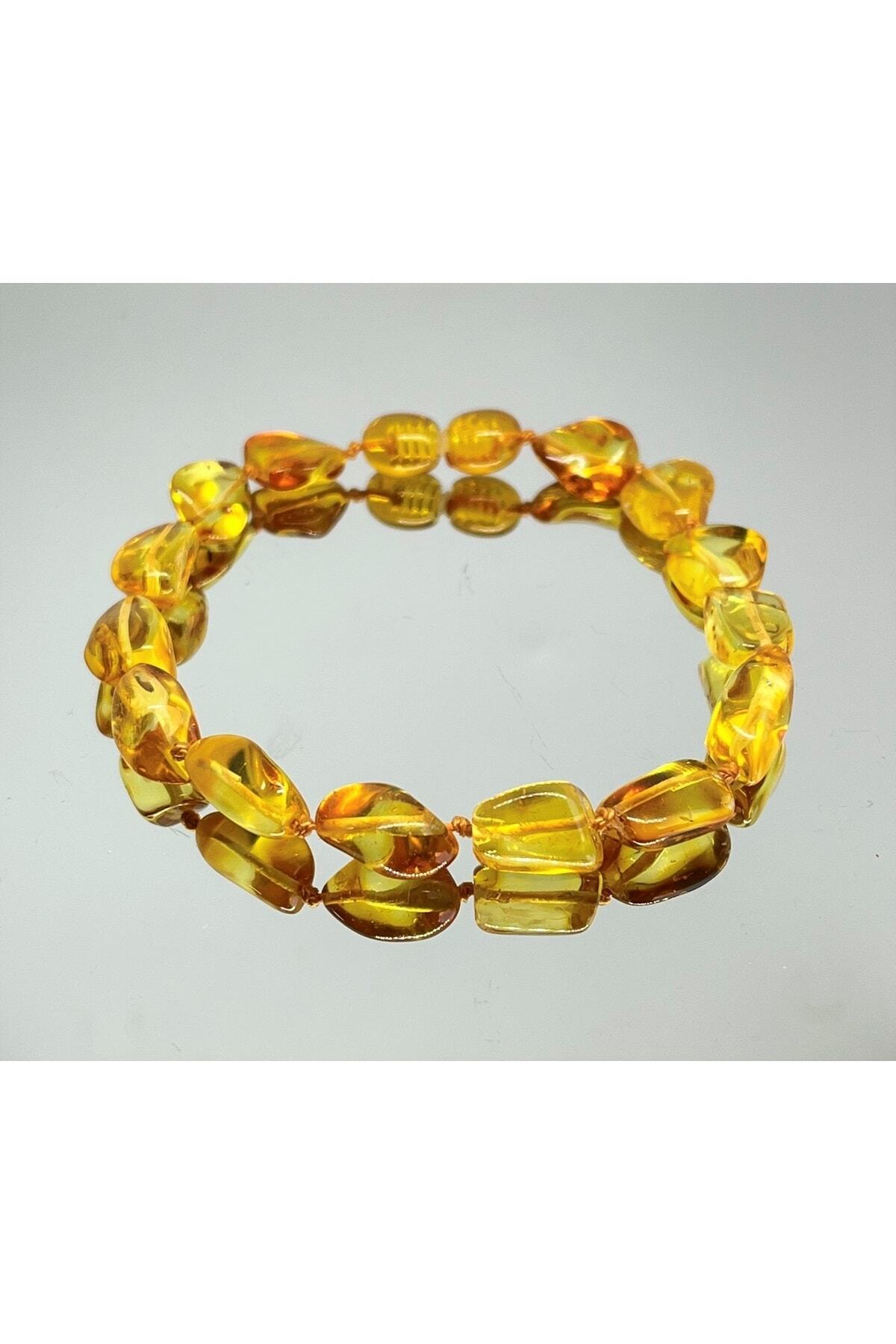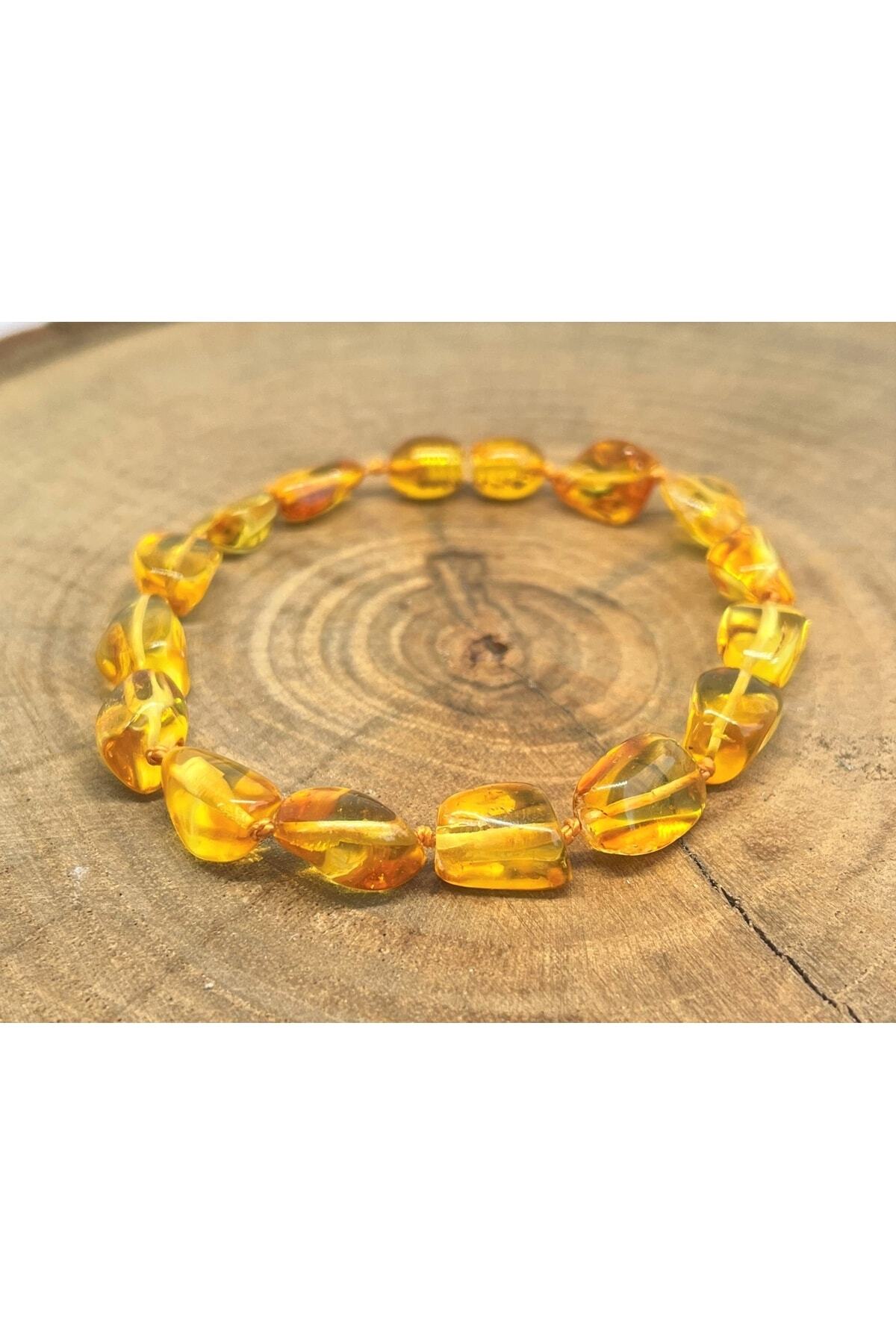 Büyük boyutlu kehribar taşları, bilekliğe modern ve şık bir hava katar