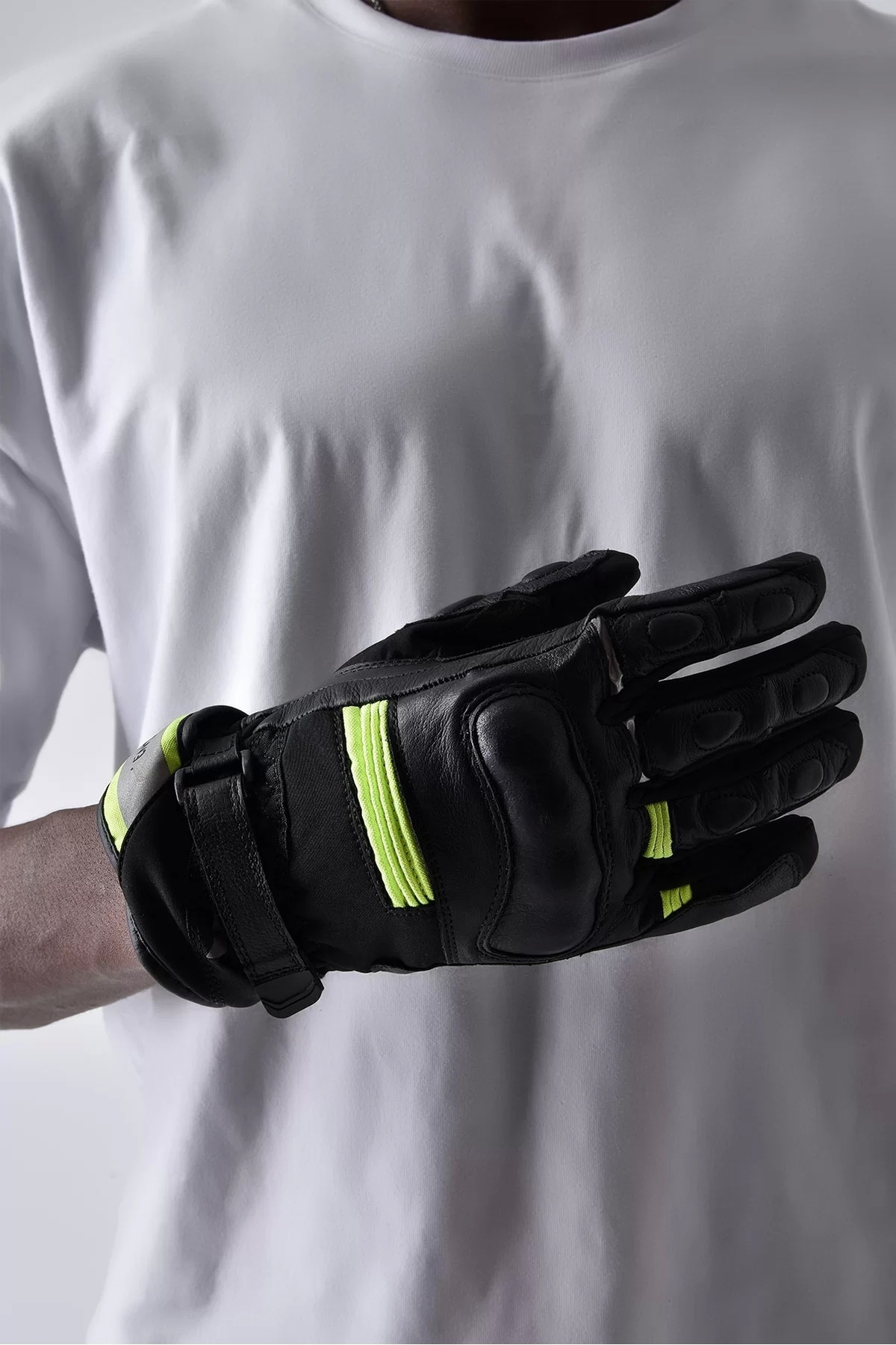[kumas]MALZEME• Yüksek performanslı deri dış yüzey• Su geçirmez• Şık ve güçlendirilmiş yapı• CE EN 13594:2015 level 1 KP Setifika[eldiven_koruma]KORUMA• Tarak kemiği ve parmak bölgelerinde polikarbon korumalar• Avuç içi polikarbon koruma• Sert bilek koruma• Parmaklarda darbe emici silikon koruyucular[eldiven_ergonomi]ERGONOMİ• Güçlendirilmiş dikiş yapısı• Uzun bilek kısmı• Dokunmatik telefon kullanma özelliği• Parmak kısımlarında reflektif şeritler• Bilek kısmında ayarlanabilir cırtlı bant• Rahat kullanım için parmak kısımları körüklü yapı• Avuç içi rahat kavrama ve tutma için kaydırmaz yapı
