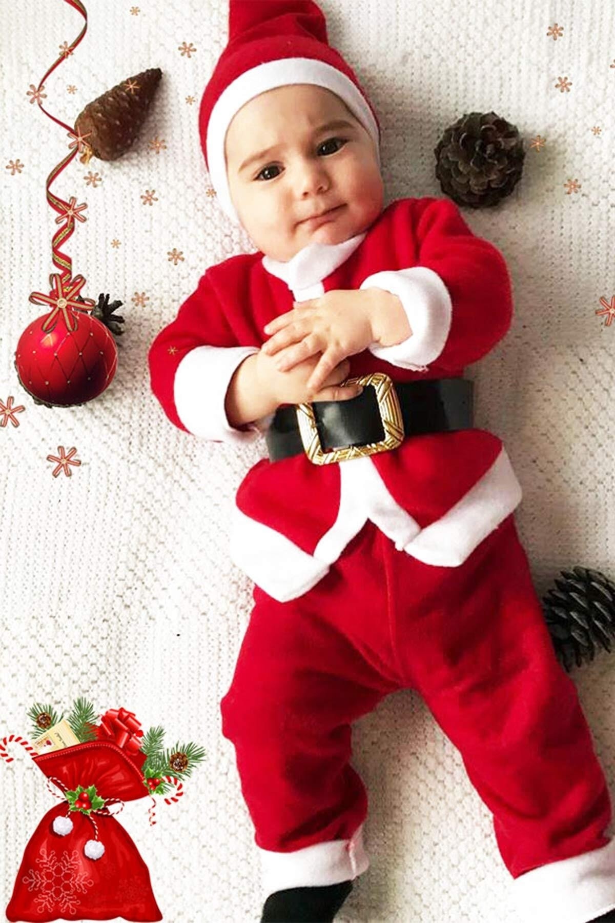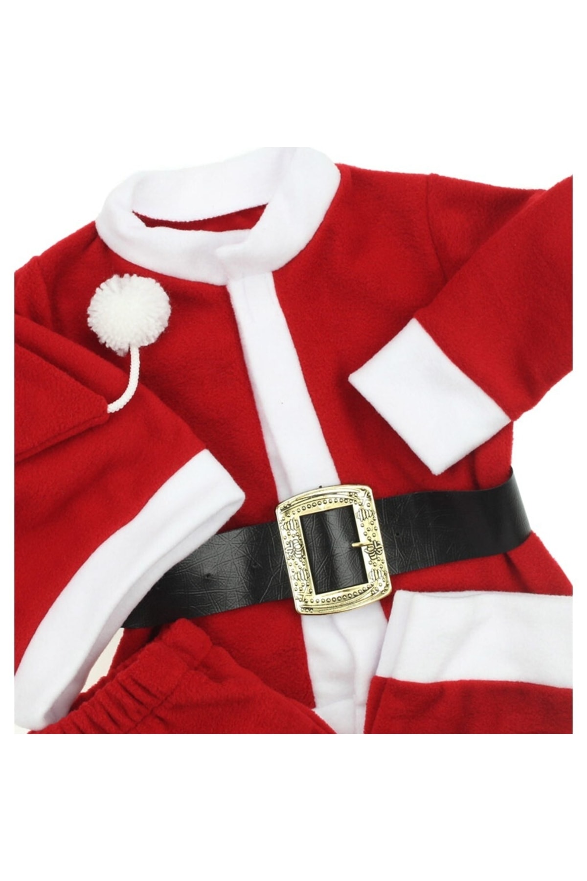 Noel Baba Kostüm Kıyafeti Yılbaşı Çocuk Elbisesi Kırmızı Polar Happy New Year