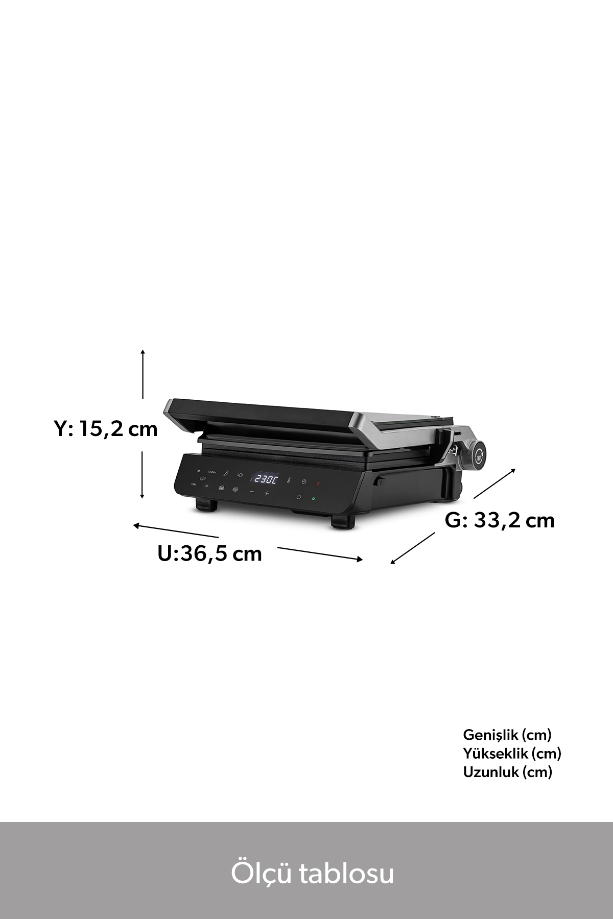 Grilliant 1343h Cam Yüzeyli, 5 Hazır Programlı, Döküm Plakalı, Ledli Konuşan Tost ve Izgara Makinesi