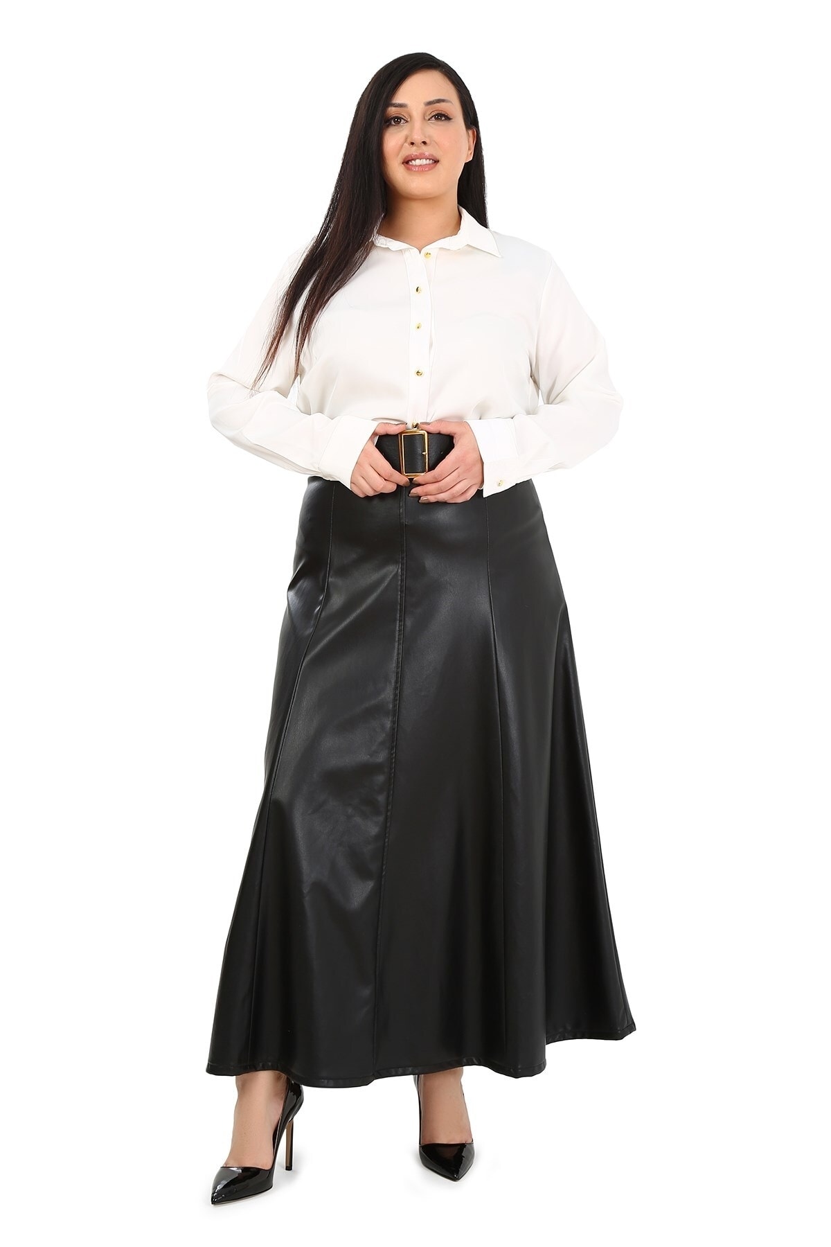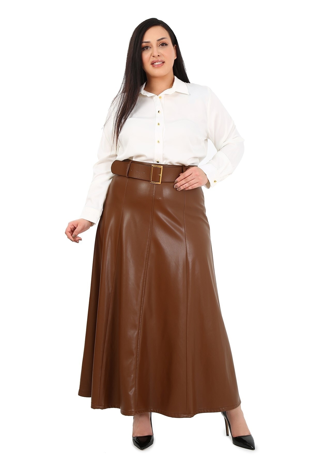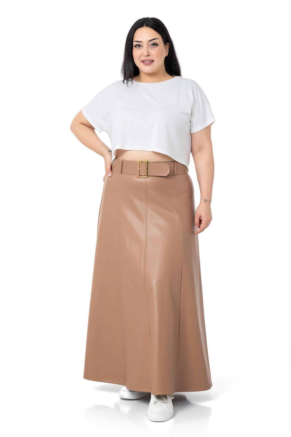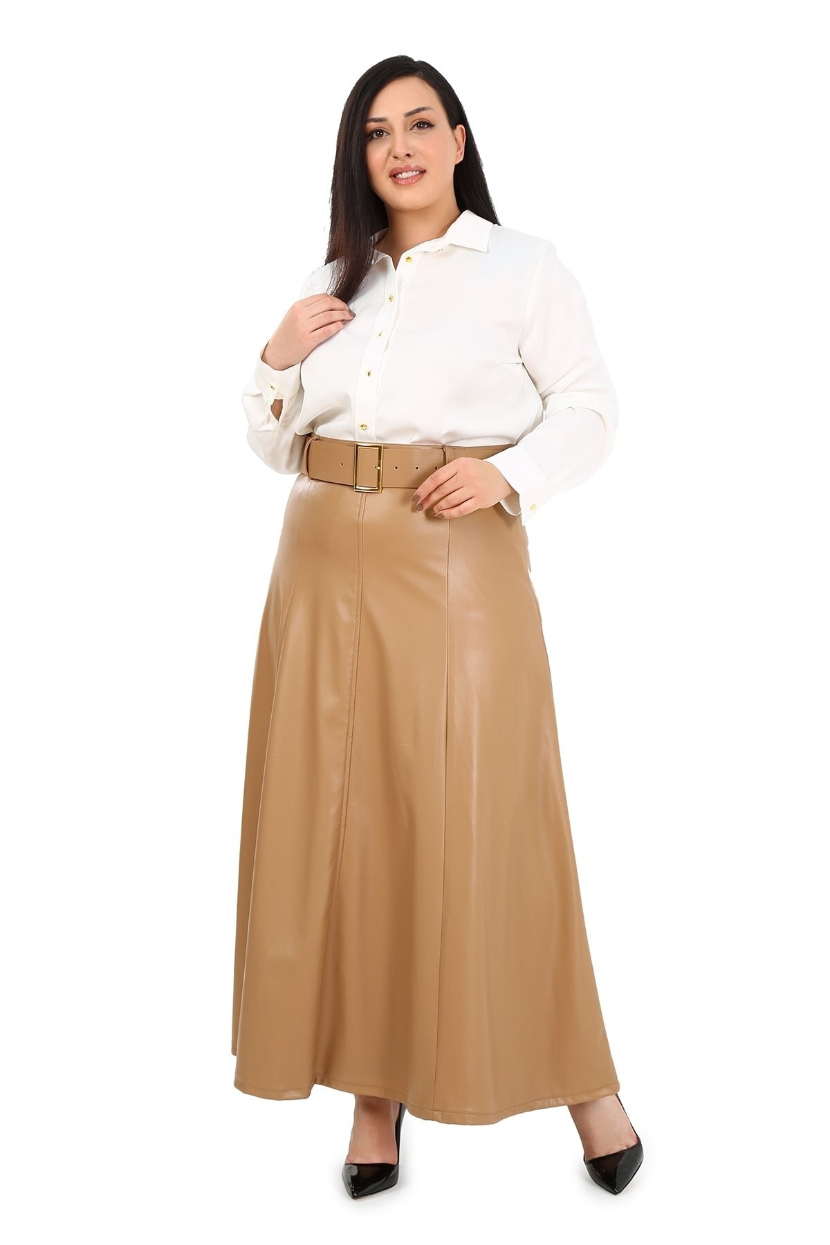 - Klasik ve zamansız bir tarz sunan düz desenli büyük beden kemerli etek, her gardıropta yerini alacak