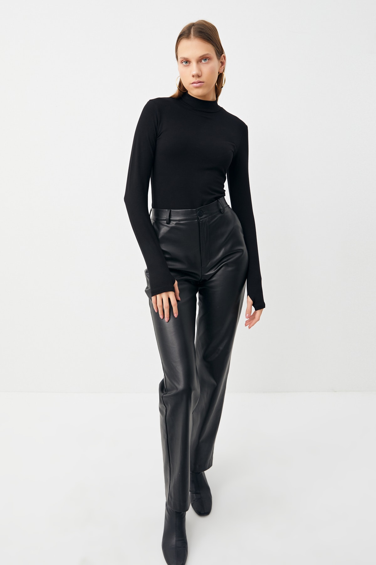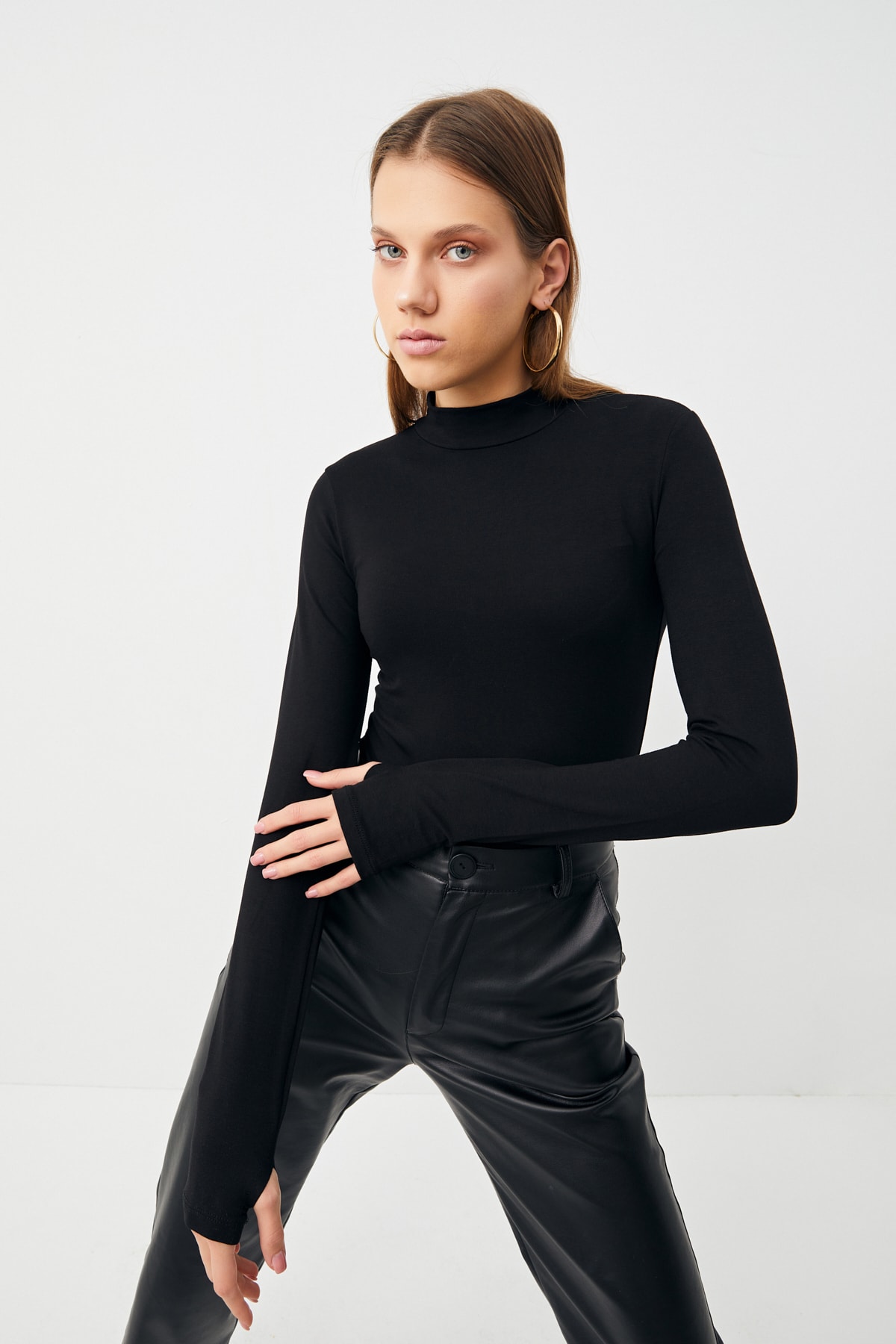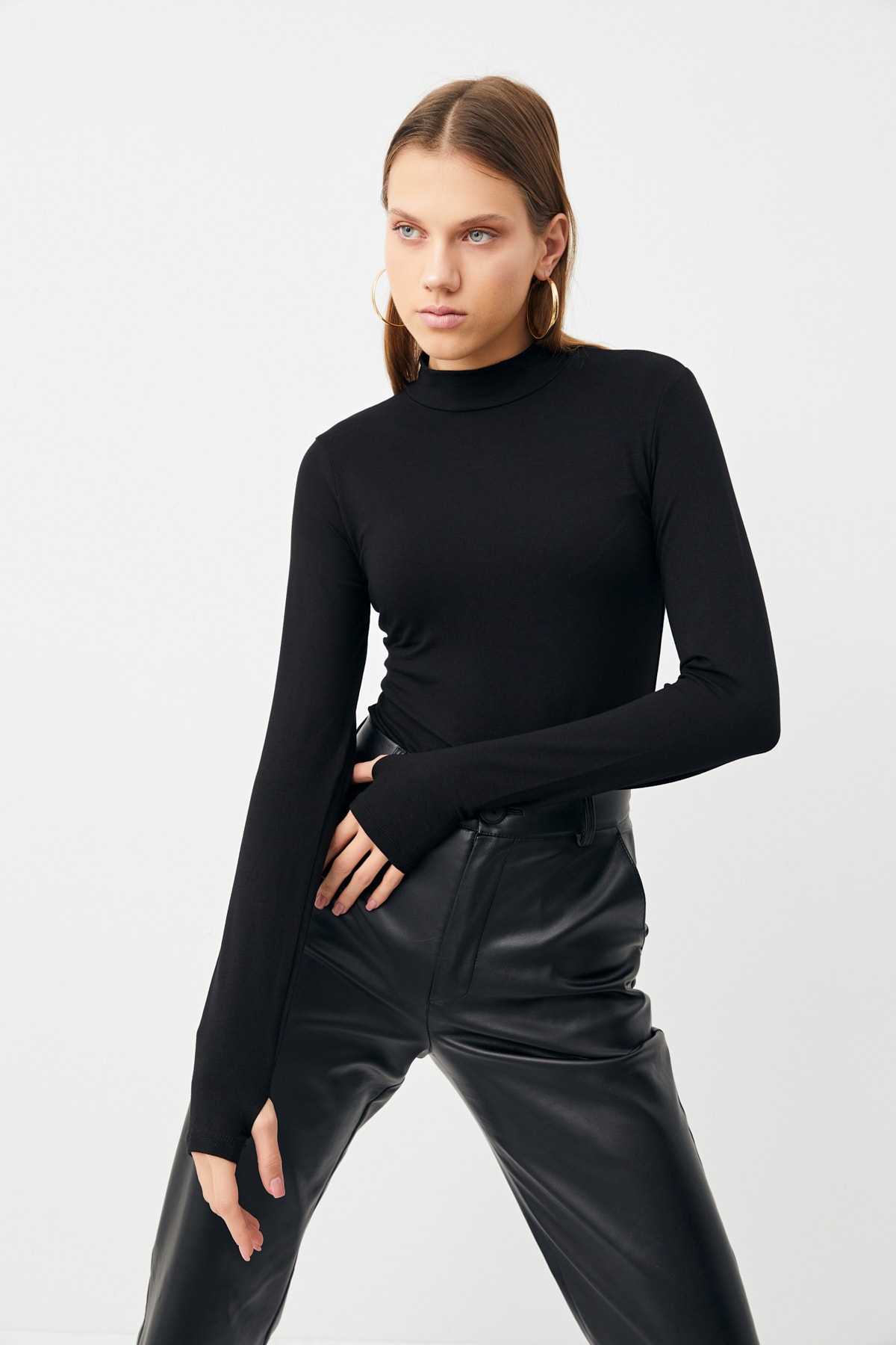 Kadın Siyah Parmak Detaylı Body